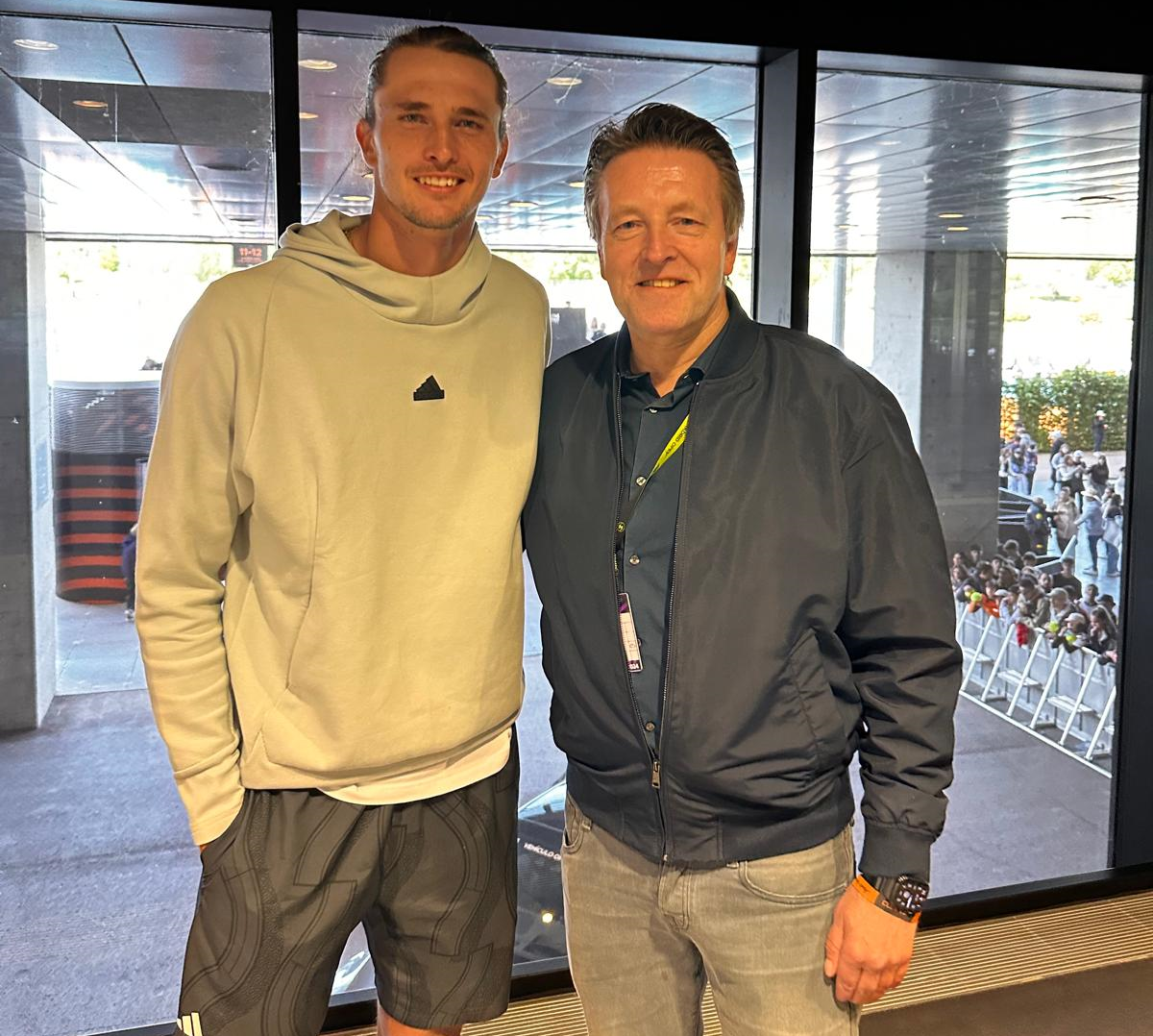Auch 2025, 2026 und 2027 bei den TERRA WORTMANN OPEN dabei: Alexander Zverev (links) und Turnierdirektor Ralf Weber besiegeln die beschlossene Vertragsverlängerung per Handschlag.