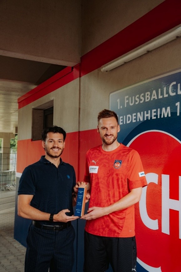 Kategorie Sportliche Fairness - Paul Altmann (Die Bayerische), Patrick Mainka (Kapitän des 1.FC Heidenheim), v.l.n.r.