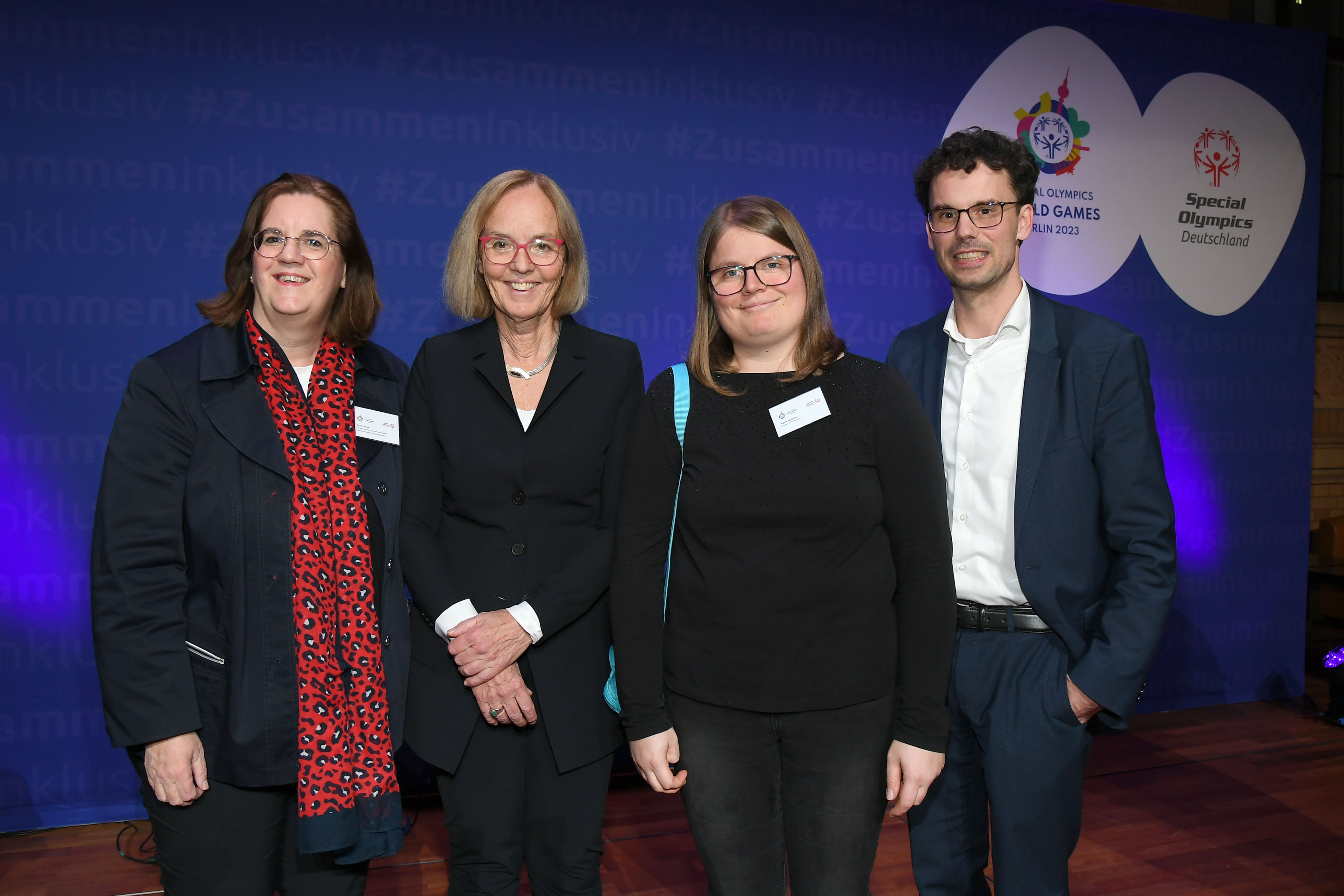 Parlamentarischer Abend SOD; v.l.n.r.: Kerstin Griese, Parlamentarische Staatssekretärin beim Bundesministerium für Arbeit und Soziales, Christiane Krajewski, Präsidentin SOD, Sophie Rensmann, Tennisspielerin, Athletensprecherin in Nordrhein-Westfalen und Teil des TeamSOD, Sven Albrecht, Bundesgeschäftsführer SOD/ CEO SOWG