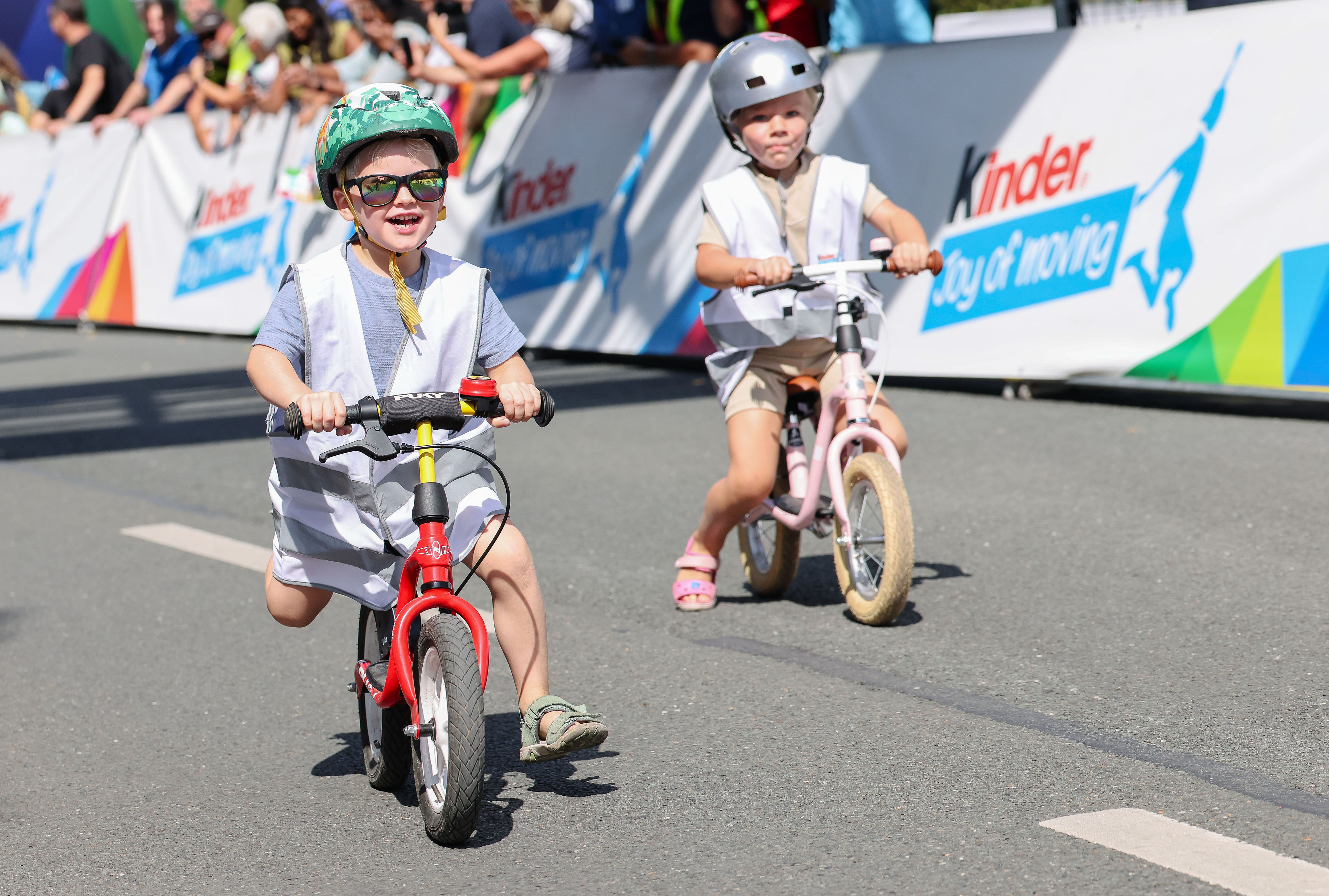 "kinder Joy of Moving mini tour" beim Start der Lidl Deutschland Tour 2025 in Essen