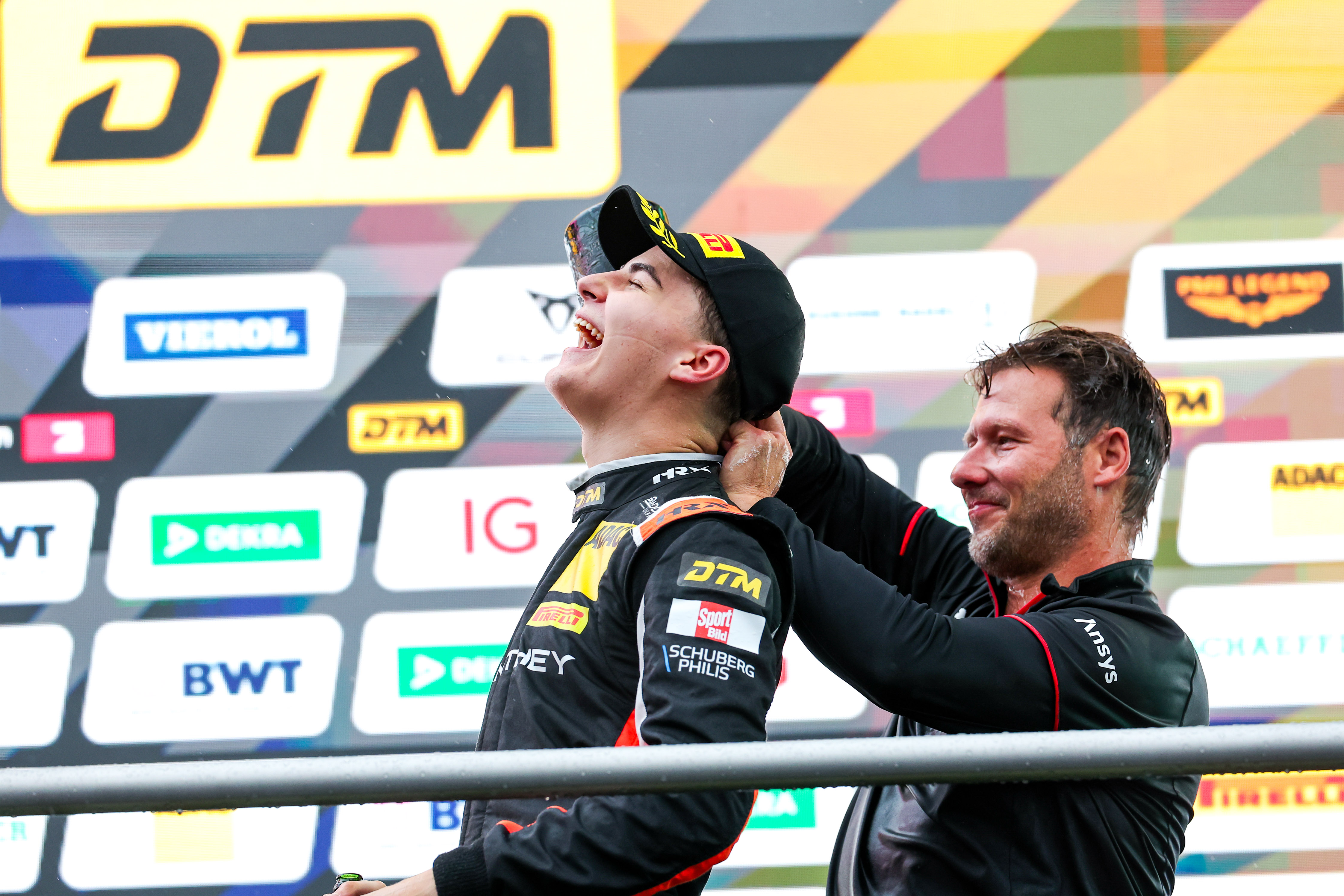 Schuring freute sich mit Sebastian Golz (Projektleiter Porsche 911 GT3 R) über sein 1. DTM-Podium