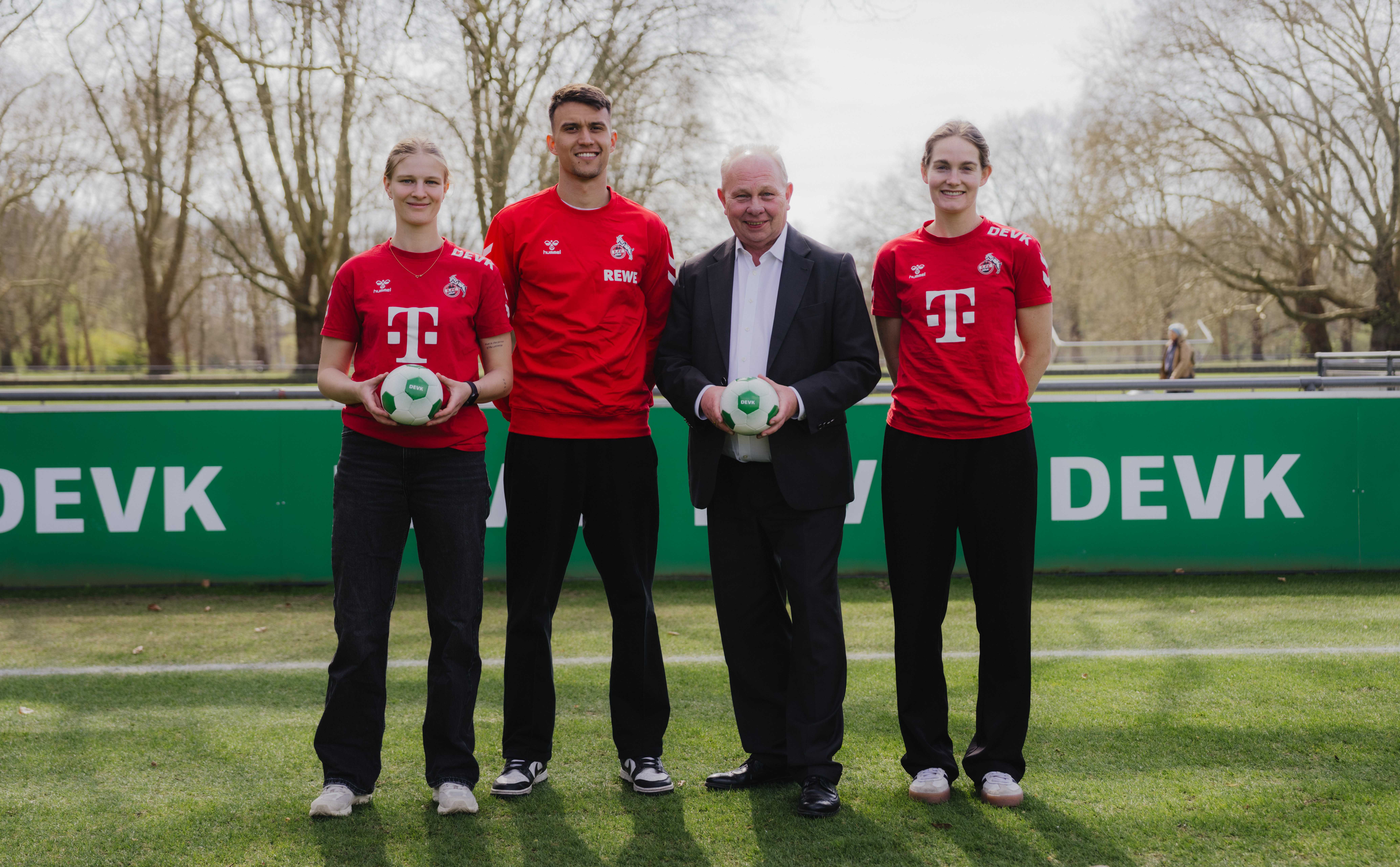 DEVK-Vorstandsvorsitzender Gottfried Rüßmann mit Spieler:innen des 1. FC Köln