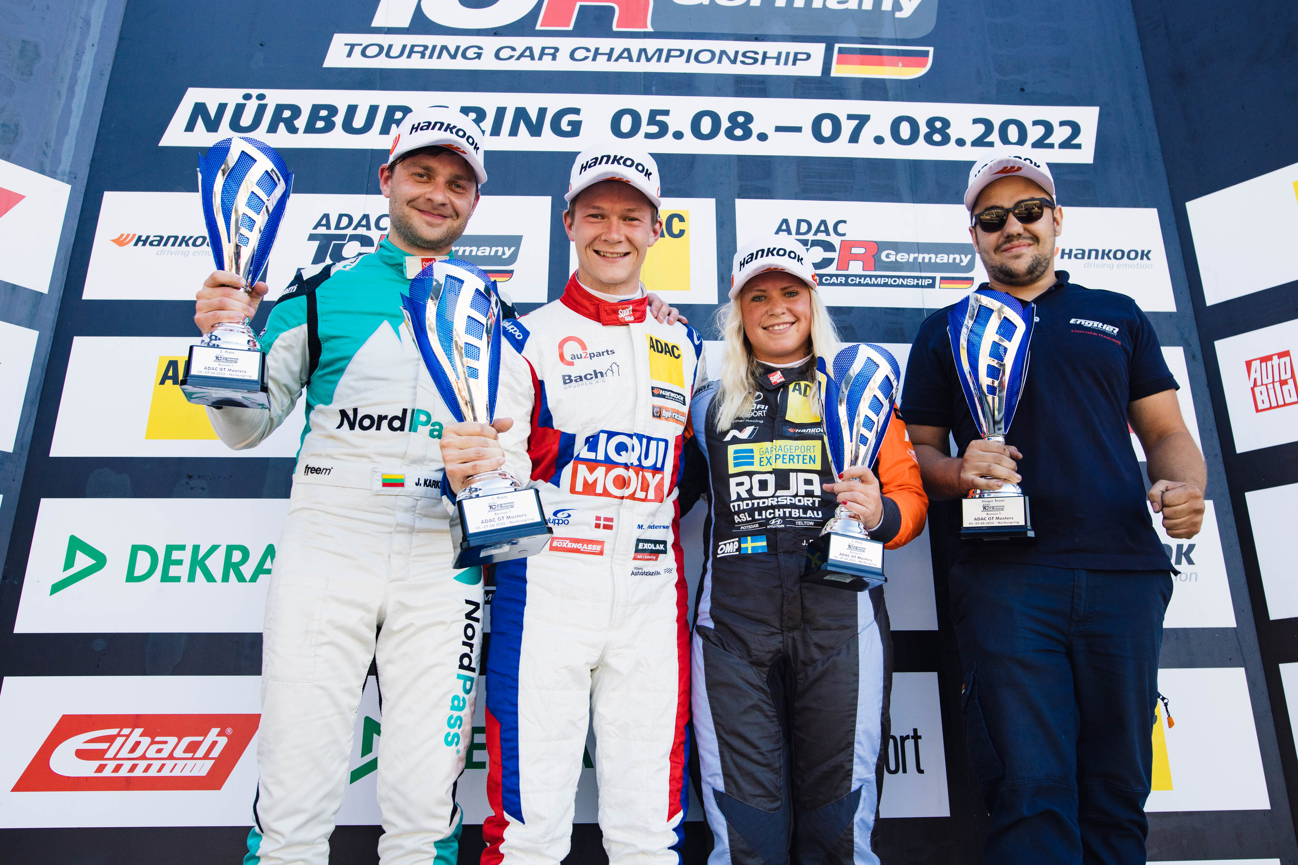 Podium: Jonas Karklys, Martin Andersen und Jessica Bäckman (vl) waren die schnellsten in der Eifel