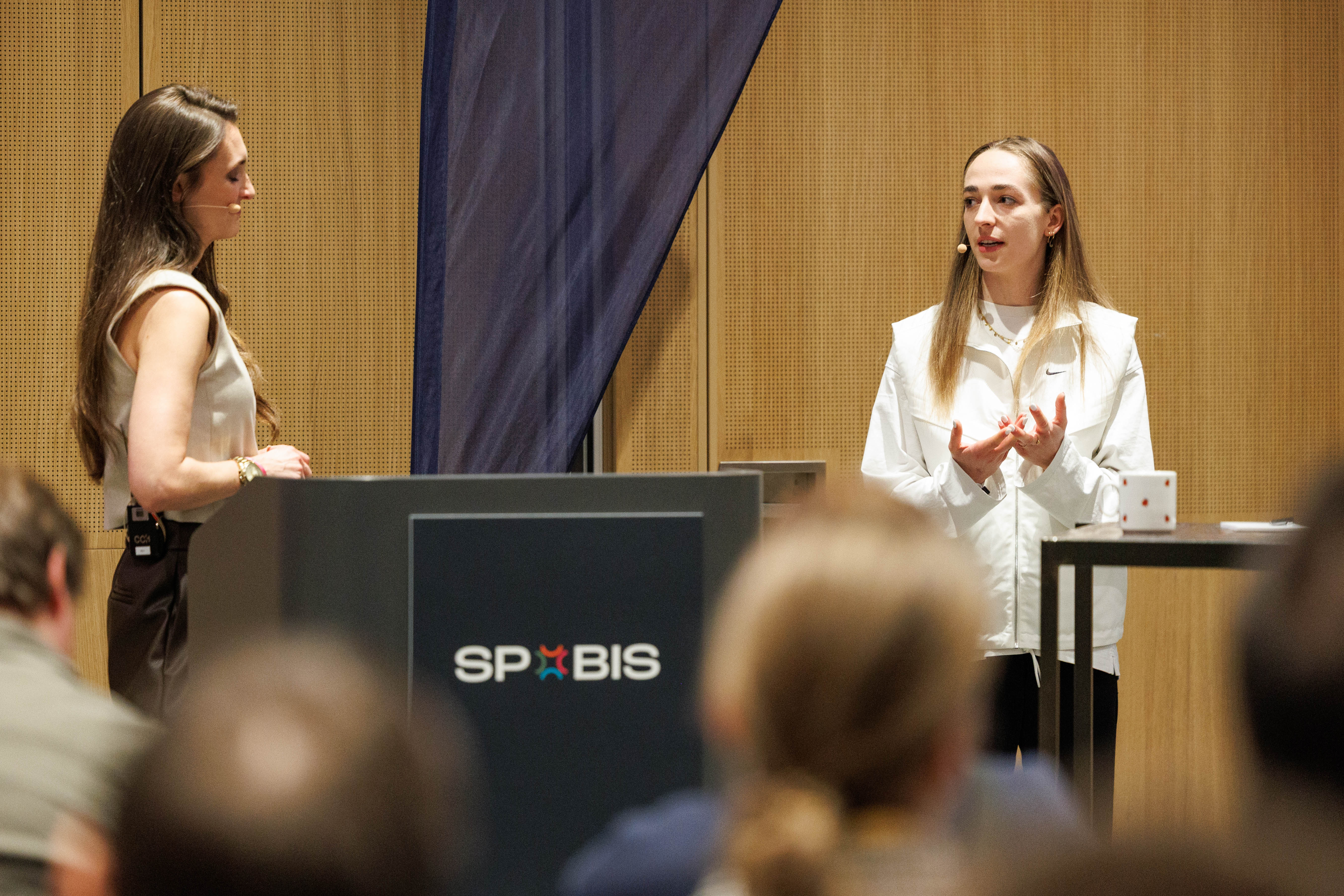 Sophia Kleinherne (rechts) im Gespräch mit Moderatorin Lisa Ramuschkat