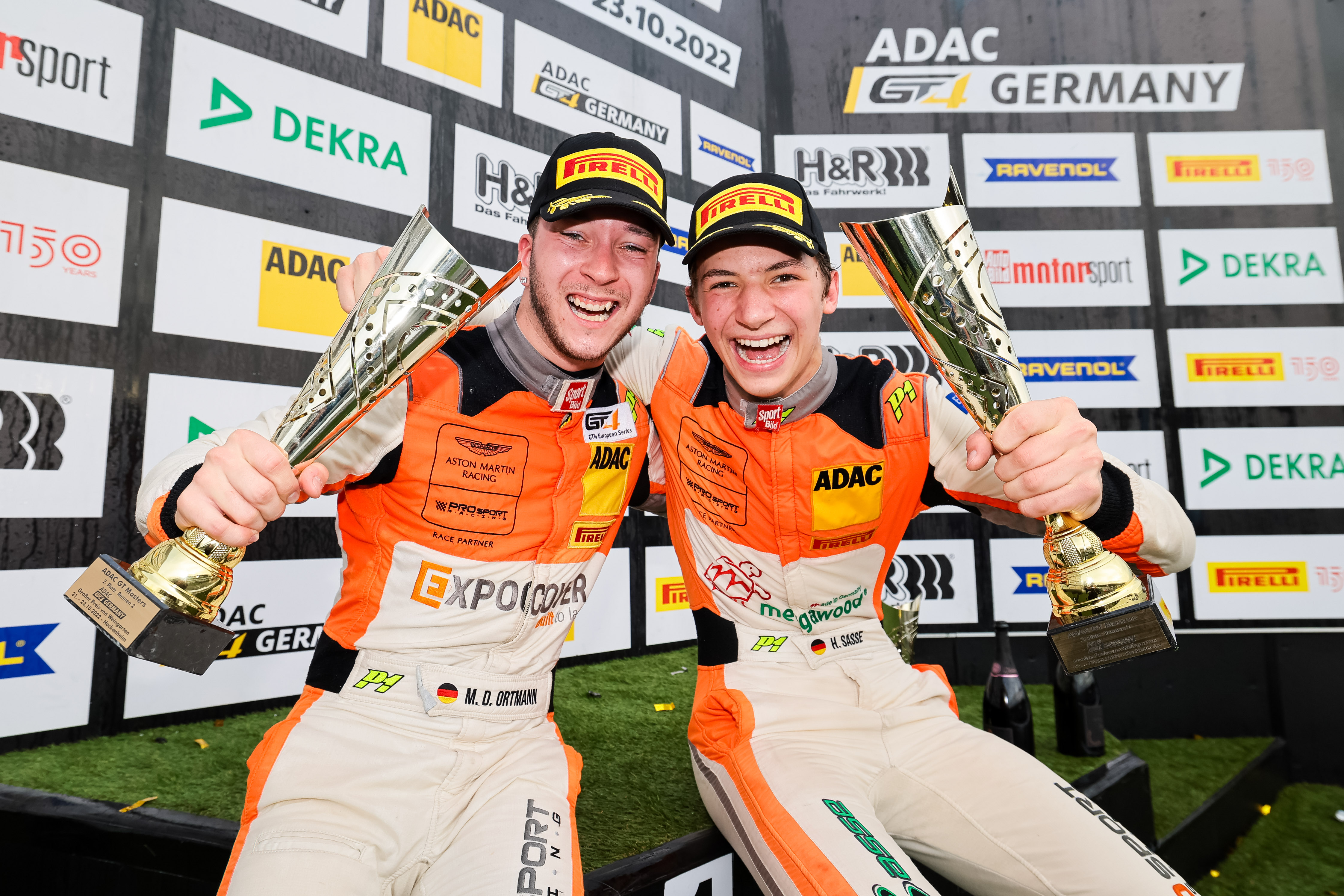 Die Champions der ADAC GT4 Germany 2022: Mike David Ortmann (li.) und Hugo Sasse