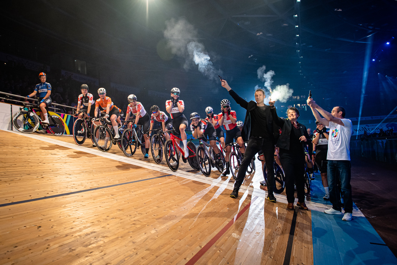 Startschuss der Jubiläumsausgabe des Berliner Sechstagerennens mit Robert Herberg