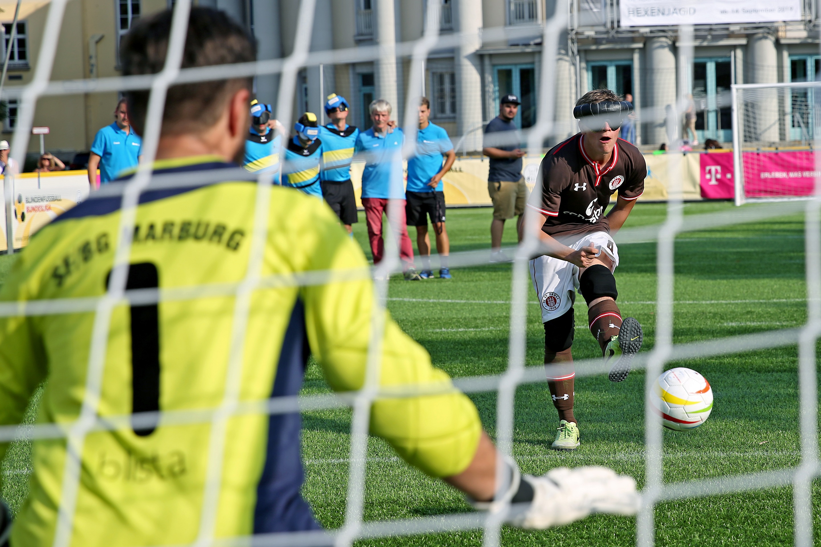 An diesem Samstag also findet der fünfte und letzte Spieltag der diesjährigen Saison der Blindenfußball-Bundesliga statt. Die vier Punktspiele werden ab 8.30 Uhr auf dem Bonner Münsterplatz ausgetragen. Um 16.30 Uhr ist Anpfiff für die allesentscheidende Partie: FC St. Pauli gegen MTV Stuttgart. Damit endet die 14. Saison der Liga, die seit dem Jahr 2008 von der DFB-Stiftung Sepp Herberger, dem Deutschen Behindertensportverband und dem Deutschen Blinden- und Sehbehindertenverband organisiert und finanziert wird.