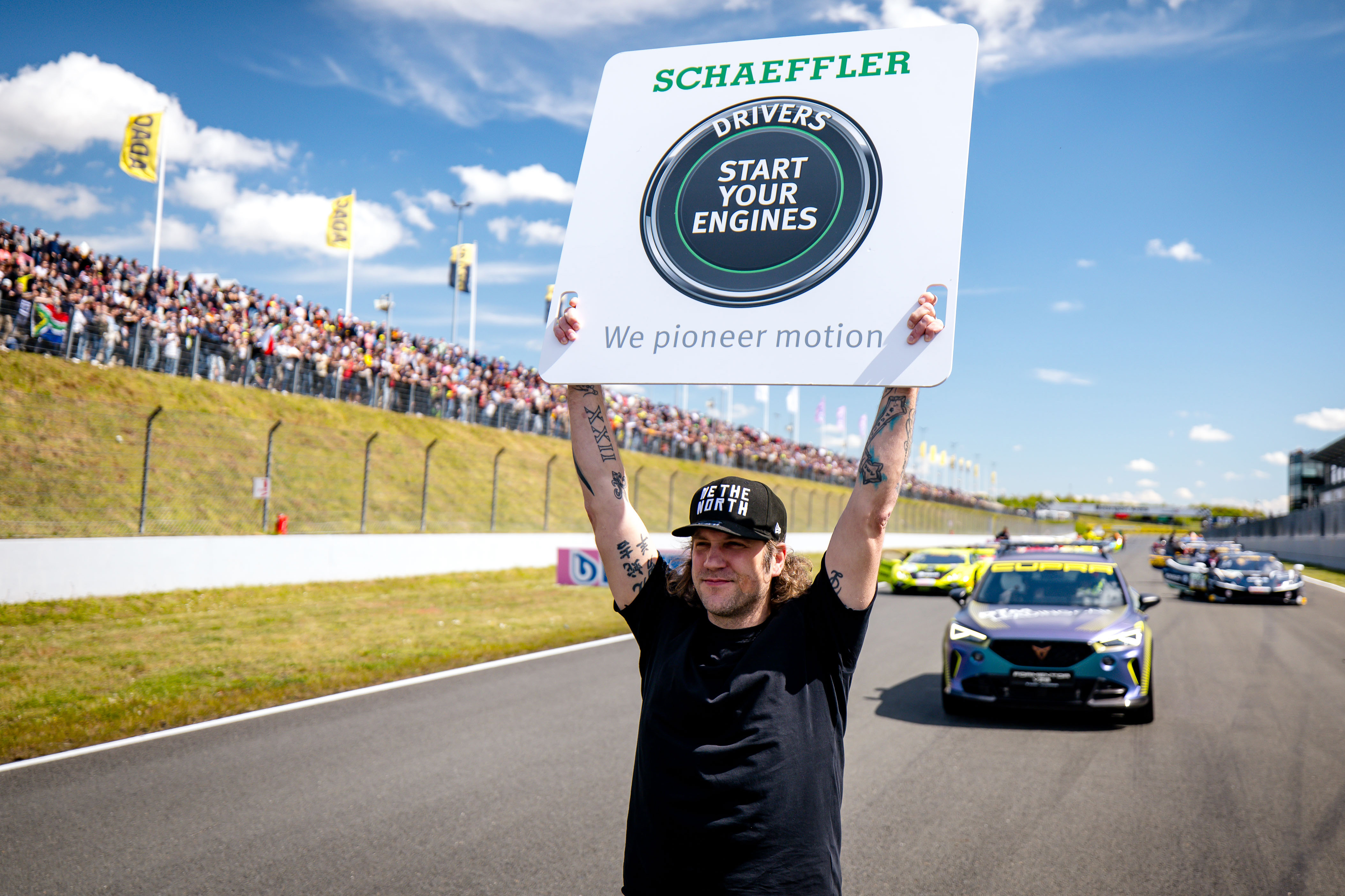 Papis Loveday, internationales Topmodel aus dem Senegal, feierte in Oschersleben seine DTM-Premiere auf und neben der Strecke. Der 47-Jährige sah sich zunächst im Fahrerlager um und ersetzte dann sein silber-schillerndes Outfit durch einen Renn-Overall für eine Fahrt im DTM-Innovationstaxi von Schaeffler. Nach dem Erlebnis auf dem Bördekurs geriet Loveday ins Schwärmen. „Ich bin ein Motorsport-Fan, aber zum ersten Mal bei der DTM und begeistert von diesem Mega-Event. Die Taxifahrt war Wahnsinn, mein ganzer Körper wurde durchgeschüttelt. Ich kann nur sagen, es ist eine besondere Gabe, solch ein Auto zu fahren.“ Am Samstagabend gab Loveday noch einmal Vollgas bei DJ Tomekk und erklärte: „Ich war schon öfter bei der Formel 1, aber was der ADAC hier veranstaltet, ist einfach mega.“