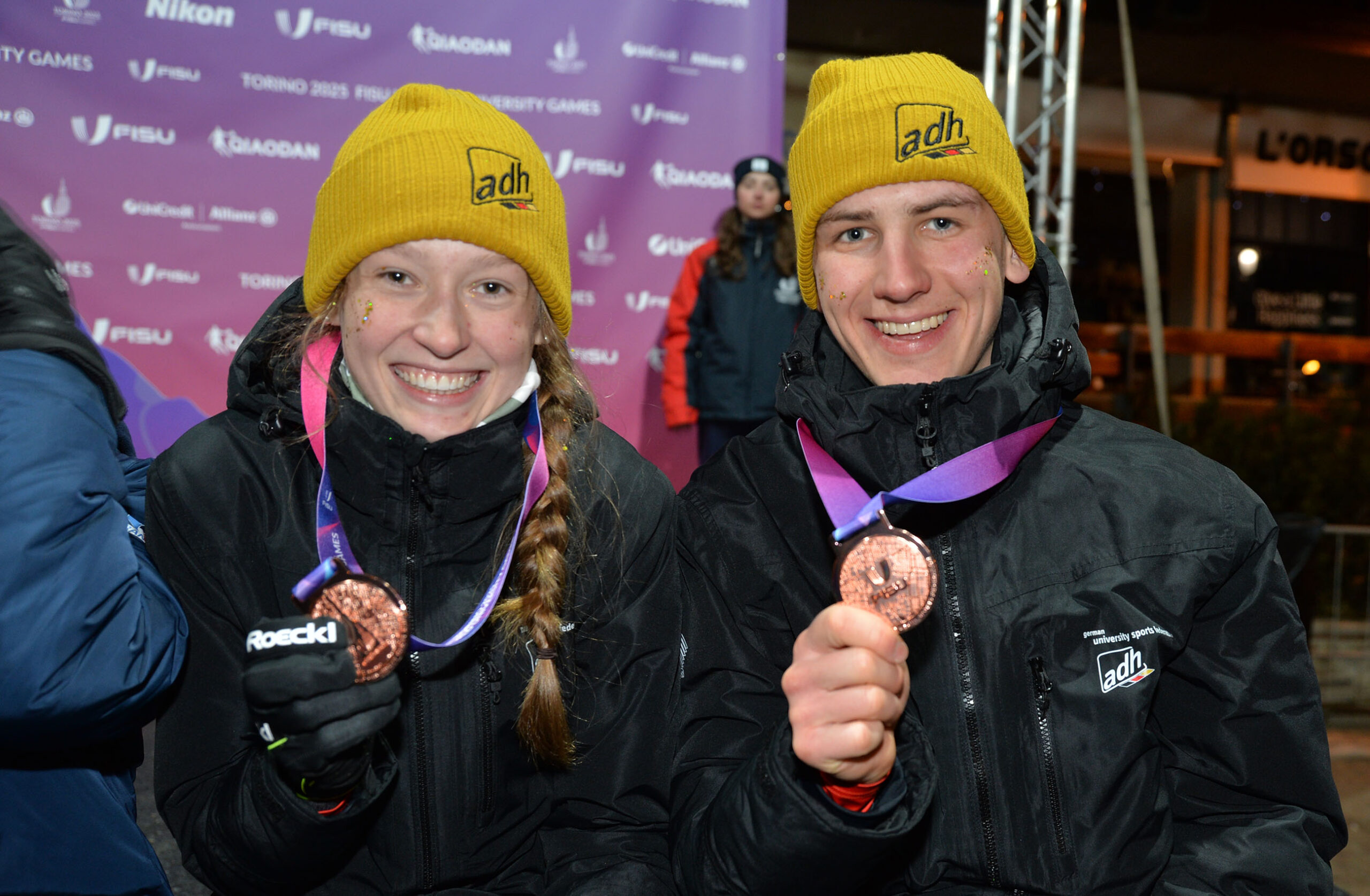 Im Ski Mountaineering holten die deutschen Aktiven im zweiten Rennen die dritte Medaille. Im Mixed Relay zeigten Sophia Weßling (Uni Innsbruck) und Finn Hösch (TU München) eine überzeugende Leistung und belegten den dritten Platz. Gold ging an Frankreich, Silber an Spanien.