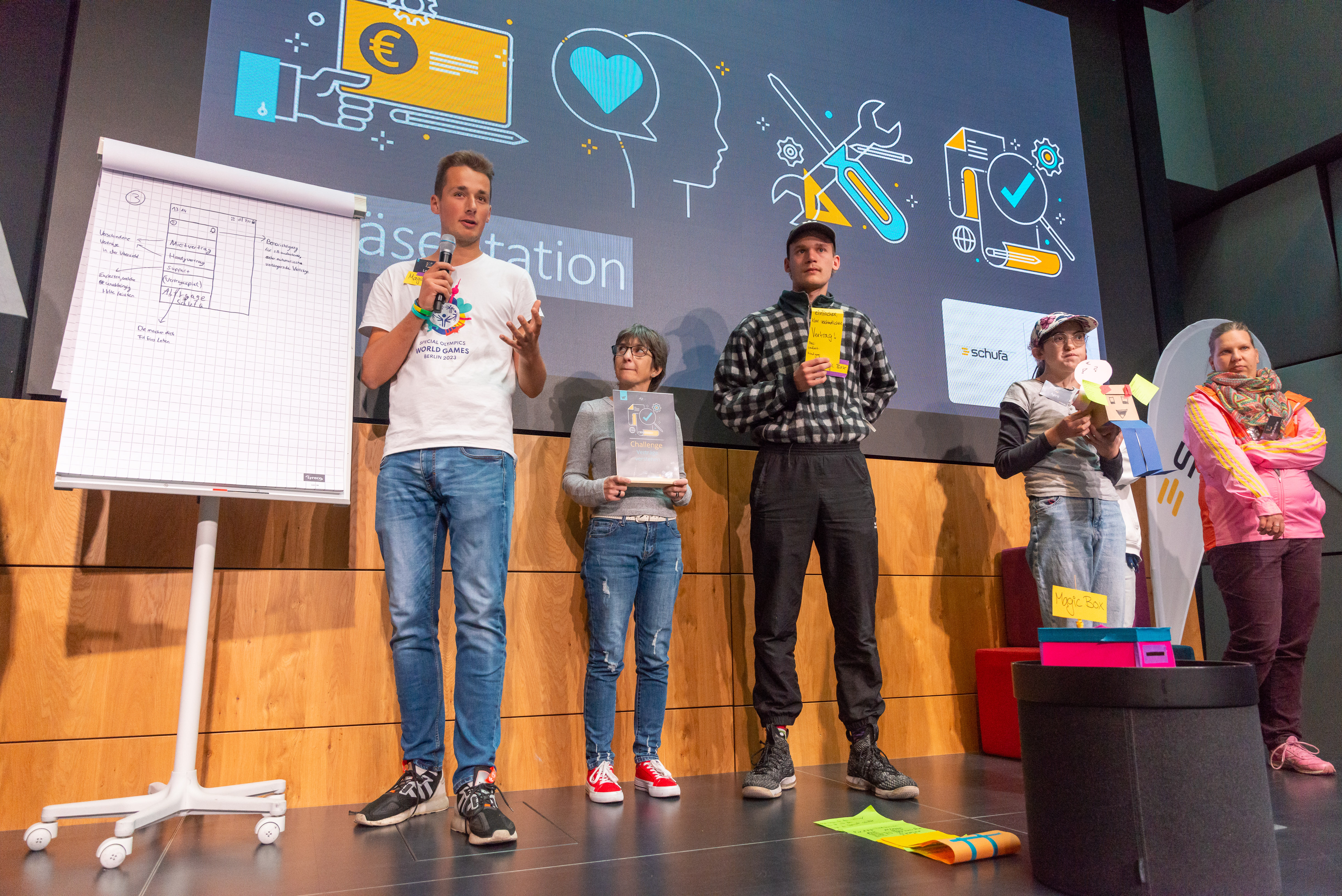 Die Lösungsmöglichkeiten, die im Hackathon erarbeitet wurden, seien technisch nicht so weit von einer möglichen Umsetzung entfernt, sagt Jessica Viertel, die für SOD den Workshop begleitet hat. Diese Rückmeldung bekam sie auch von der Schufa Holding AG, Partner von SOD und Special Olympics World Games Berlin 2023, die den Hackathon als inklusive Ideenwerkstatt in Berlin veranstaltet hat. Und damit es nicht bei einem theoretischen Workshop bleibt, werden jetzt die Erkenntnisse aus dem Hackathon auch an Akteure der Finanzwelt weitergegeben. Ein Schritt, der dazu beitragen kann, dass sich in der realen Welt Dinge verändern können.