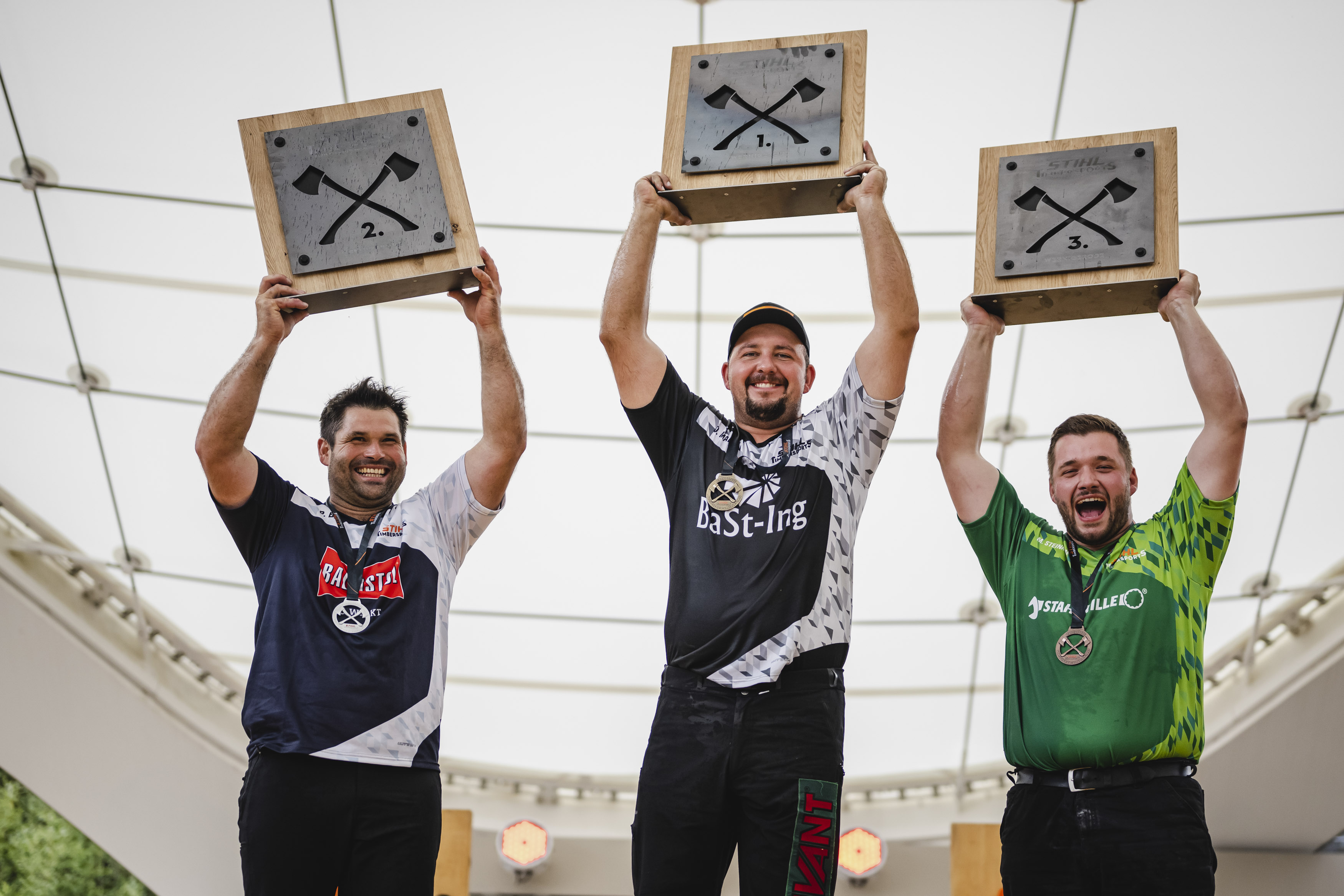 Komplettiert wurde das Podium von Marcel Steinkämper aus Minden. Der 26-Jährige wusste vor allem in den Axt-Disziplinen zu überzeugen, holte sich am Underhand Chop und auf dem Springboard die Tagesbestzeit und legte so den Grundstein für die Bronzemedaille – der größte Erfolg in Steinkämpers noch junger TIMBERSPORTS® Karriere. „Zwischenzeitlich habe ich nicht mehr dran geglaubt, dass es noch für das Podium reicht. Das Niveau ist hier einfach sehr hoch. Aber ich habe die Kurve gekriegt und bin überglücklich“, so der Mindener.