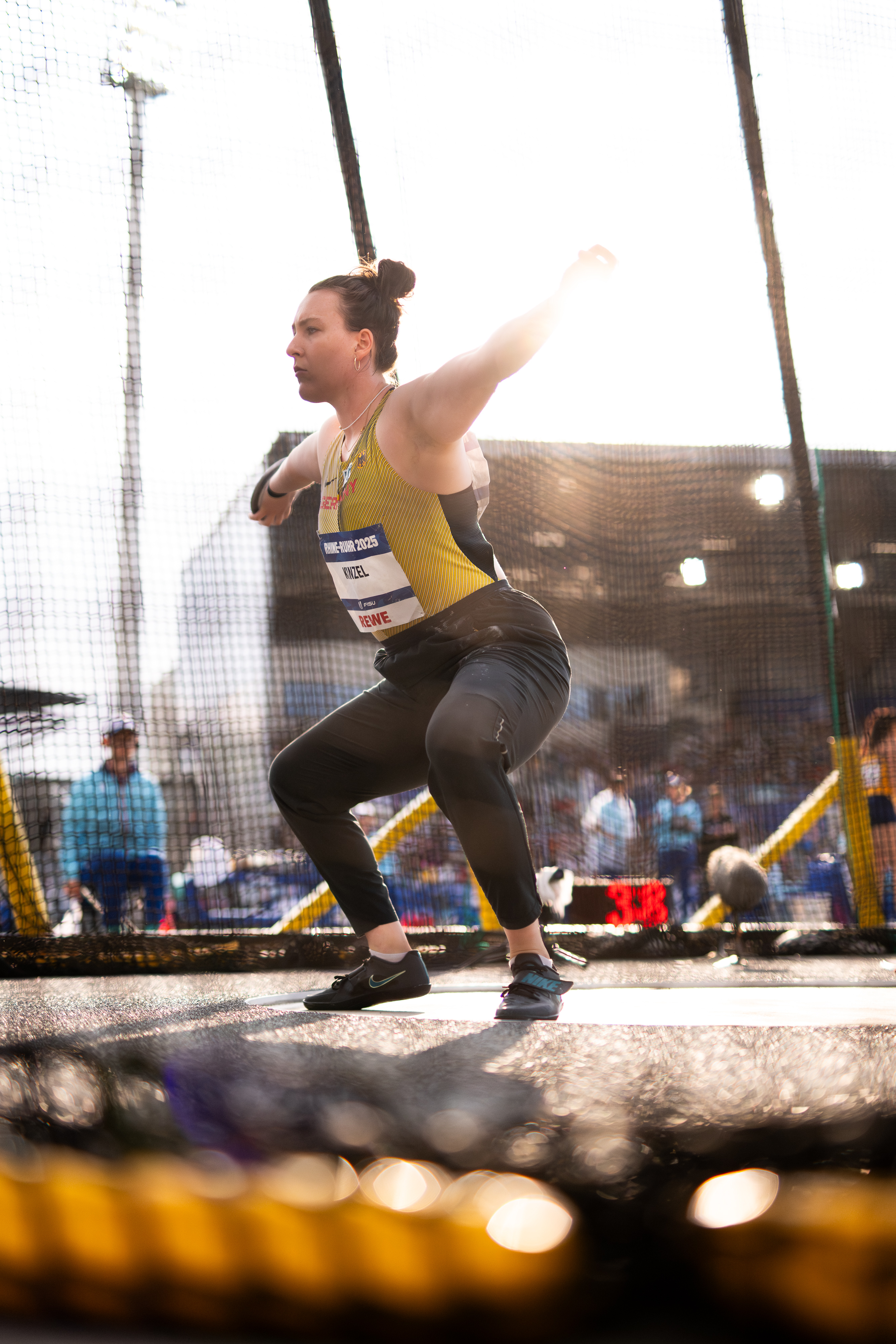 Die zweite Bronzemedaille für Team Studi holte Antonia Kinzel (HS Mannheim), Titelverteidigerin von Chengdu 2023, im Diskuswurf. „Das Startfeld war heute deutlich stärker als in China – daher fühlt es sich für mich nicht danach an, Gold verloren zu haben“, so Kinzel über den Vergleich der beiden Medaillen. Der Druck, vor einem tosenden Heimpublikum anzutreten, ging nicht spurlos an ihr vorbei. „Es war ein Nervenkrimi“, so die 24-Jährige, die erst im fünften von sechs Würfen ihre Tagesbestweite von 58,43 Metern erzielte. „Vor zwei Jahren kannte mich niemand, diesmal war ich die Titelverteidigerin vor Heimpublikum. Natürlich wollte ich da auch zeigen, was ich kann.“ Teamkameradin Joyce Oguama (Uni Bochum) landete mit 58,07 Metern auf Rang fünf.