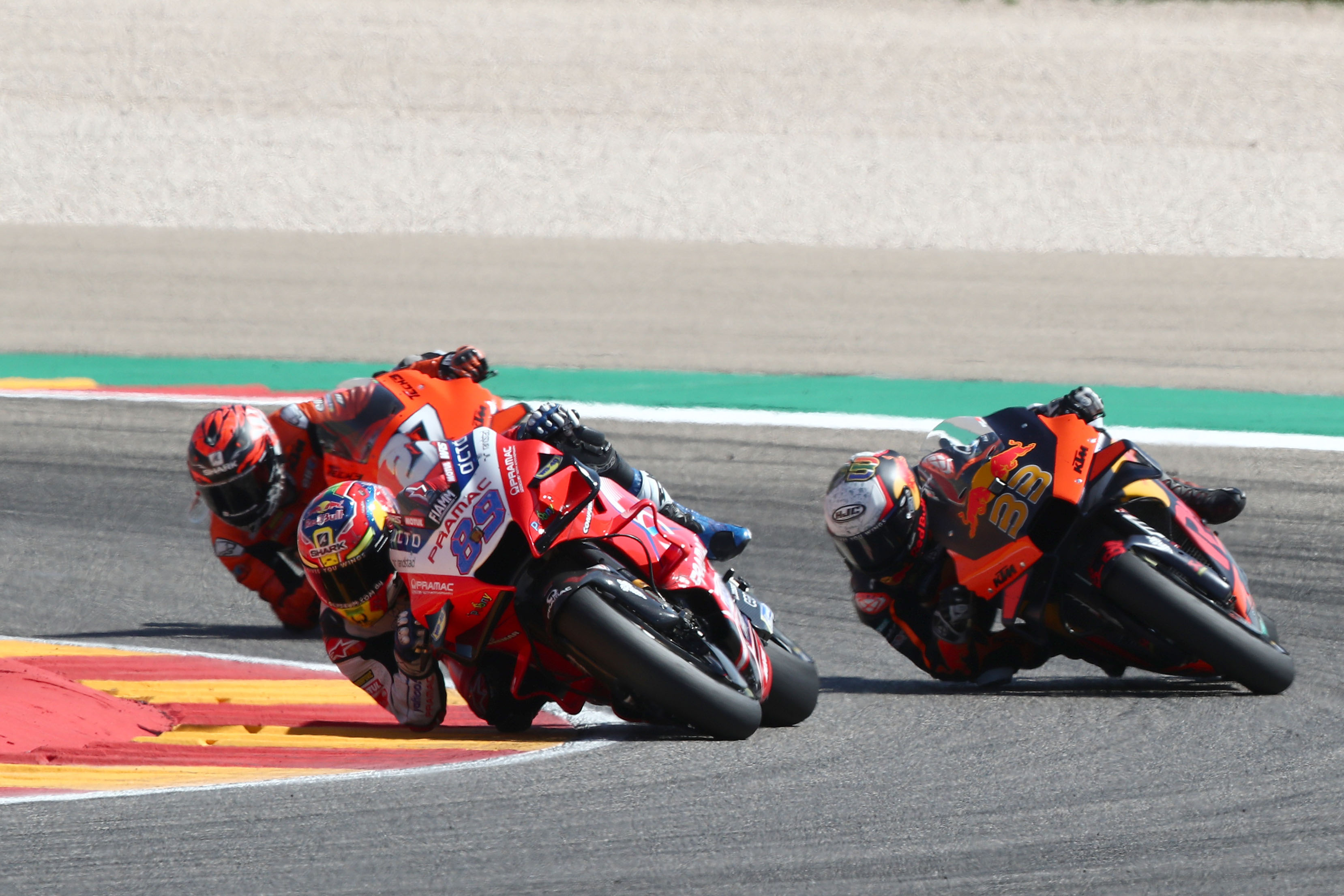 Dem sich ebenfalls in Topform befindenden Bagnaia sei mit seinem Premierensieg in Aragón endgültig der Durchbruch gelungen, als er die erbitterten Angriffe von Marc Márquez abwehrte. „So etwas gibt enormes Selbstbewusstsein. Und was das Risikomanagement anbelangt, tut sich der Jäger immer leichter als der Gejagte.“