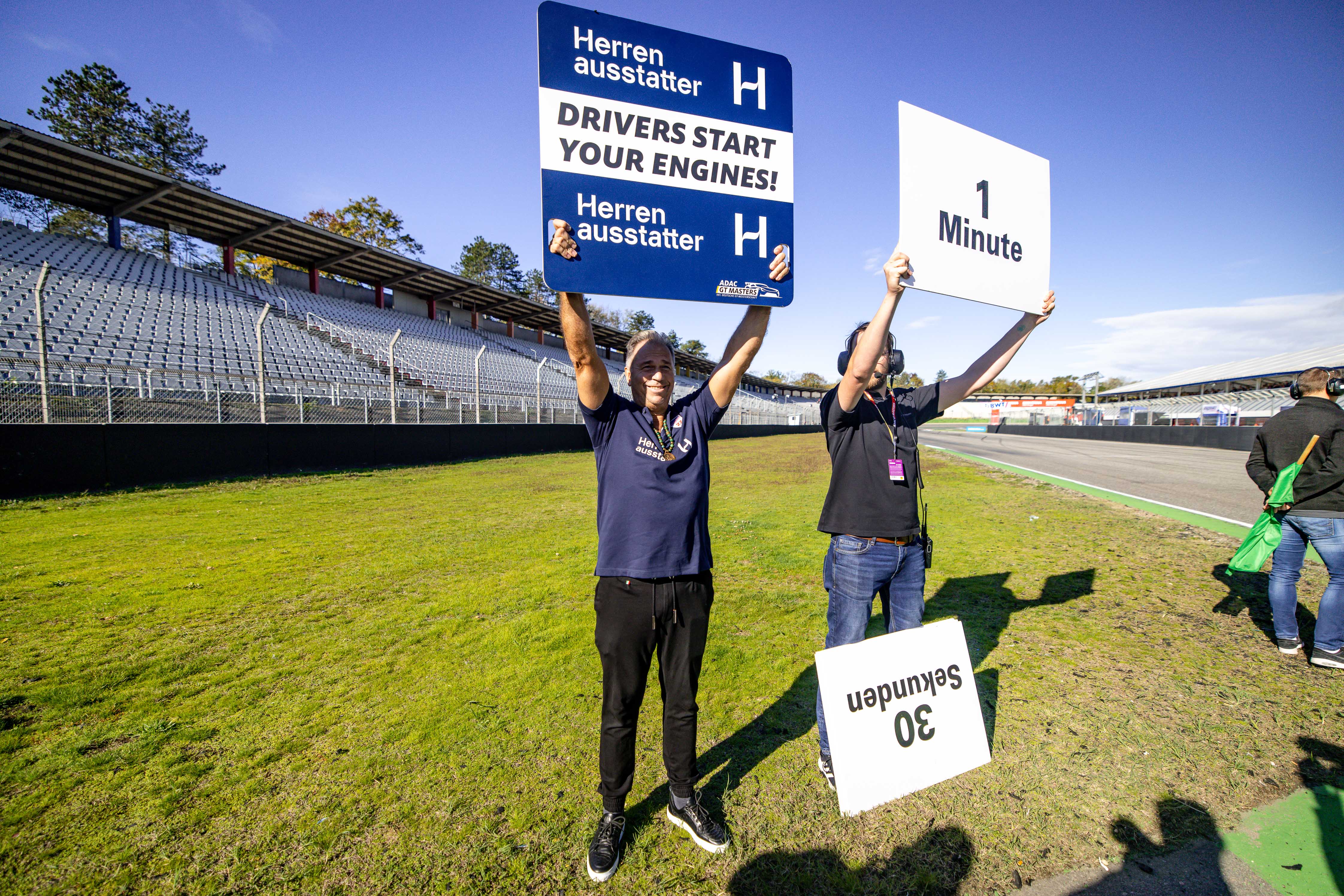 Jahrelang kommentierte Kai Ebel bei RTL die Rennen der Formel 1 und brachte es auch wegen seines schrillen Outfits zum Kultstatus. Selbst Motorsport-Laien kannten den rasenden Reporter, der auf allen Rennstrecken der Welt regelmäßig mit bunten Hawaiihemden jeder Couleur und extravaganten Brillendesigns vor die Kamera trat. Das Finale der Deutschen GT-Meisterschaft am Hockenheimring ließ sich der 58-Jährige als Gast des „Club of Champions“ von Serienpartner herrenausstatter.de nicht entgehen, begutachtete die Supersportwagen und sprach mit den Fahrern. Die wurden von Kai Ebel vor dem Rennen mit dem „Start your engines“-Schild aufgefordert, die Motoren anzulassen und nahmen danach die Pokale aus den Händen des Kult-Reporters entgegen.