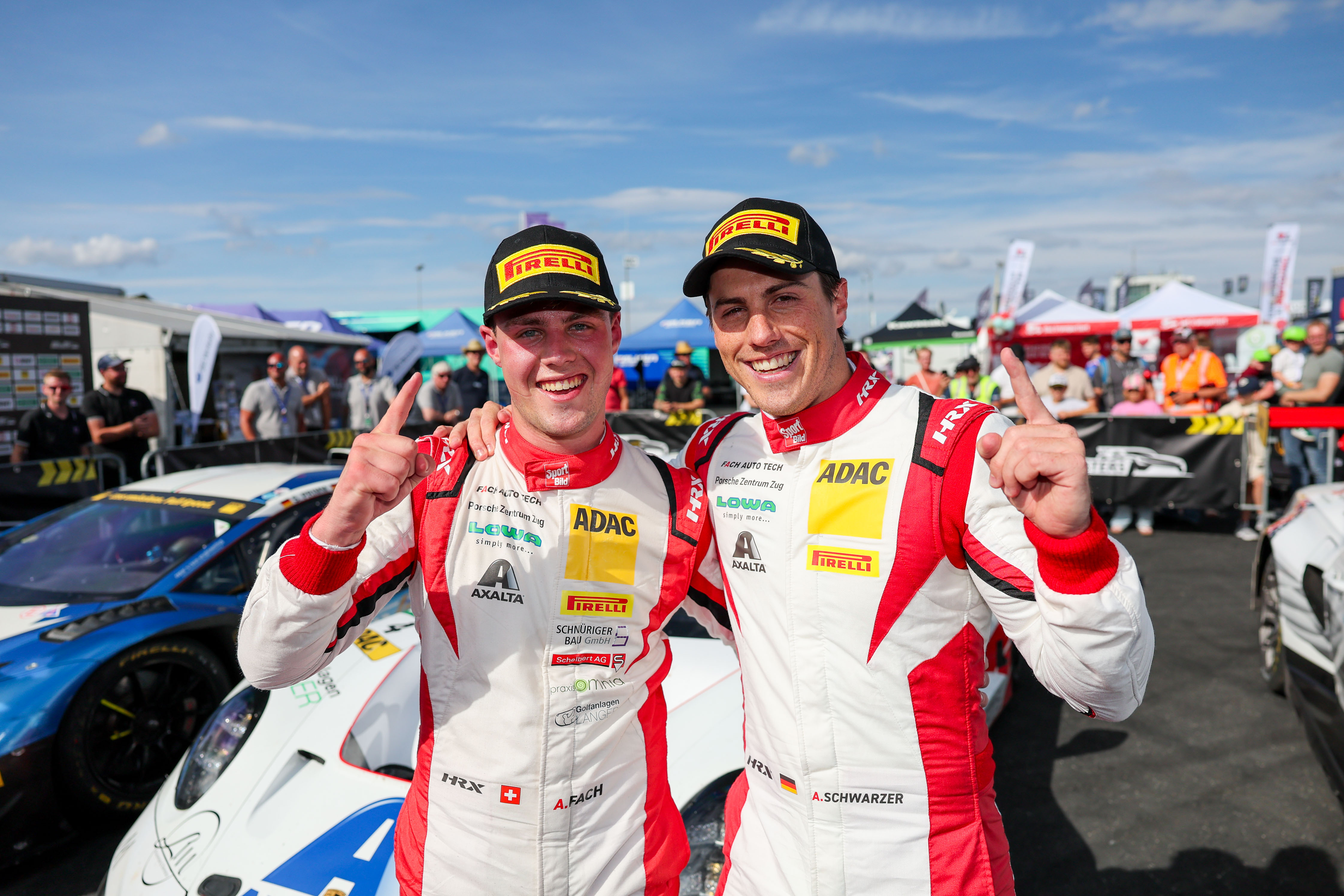 Nürburg. Alexander Fach (23/CHE) und Alexander Schwarzer (36/DEU) haben sensationell in ihrem Porsche 911 GT3 R den ersten Lauf des ADAC GT Masters auf dem Nürburgring im Rahmen des ADAC Truck GP gewonnen. Das Pro-AM-Duo von Fach Auto Tech setzte sich im 80-minütigen Endurance-Lauf mit 15,560 Sekunden Vorsprung gegen die Konkurrenz durch. „Endlich! Wir haben uns diesen Sieg wirklich verdient, nachdem wir durch unsere harte Arbeit stetig Schritte nach vorne gemacht haben“, jubelte Fach. „Das Rennen ist nicht für uns gelaufen, sondern wir haben es zu unserem gemacht und dank unserer Performance gewonnen. Am Ende meines ersten Stints habe ich durch ein paar freie Runden den Grundstein für unseren späteren Sieg gelegt. Als ich wieder ins Auto gestiegen bin, wollte ich nichts von Platzierungen wissen und habe mich auf mich selbst konzentriert. Fünf Runden nach dem finalen Stopp hat mir das Team gesagt, dass ich elf Sekunden Vorsprung habe. Von diesem Moment an wusste ich, dass ich diesen Sieg nicht mehr hergeben werde.“ Teamkollege Schwarzer fügte hinzu: „Ich kann es immer noch nicht glauben. Es war ein so großartiges Rennen und das Auto war unglaublich. Ich kam raus aus der Box, war fokussiert und wusste, wo ich besser werden musste. Ich habe mich immer nur auf die Spitze konzentriert und das hat funktioniert.“ Das Podium komplettierten Salman Owega (20/Köln)/Finn Wiebelhaus (19/Obertshausen/beide Haupt Racing Team) im Ford Mustang GT3 und die Lamborghini-Piloten Finn Zulauf (20/Königsstein)/Simon Connor Primm (20/Großschirma/Paul Motorsport). Schwarzer/Fach gewannen zudem die Pro-AM-Wertung.