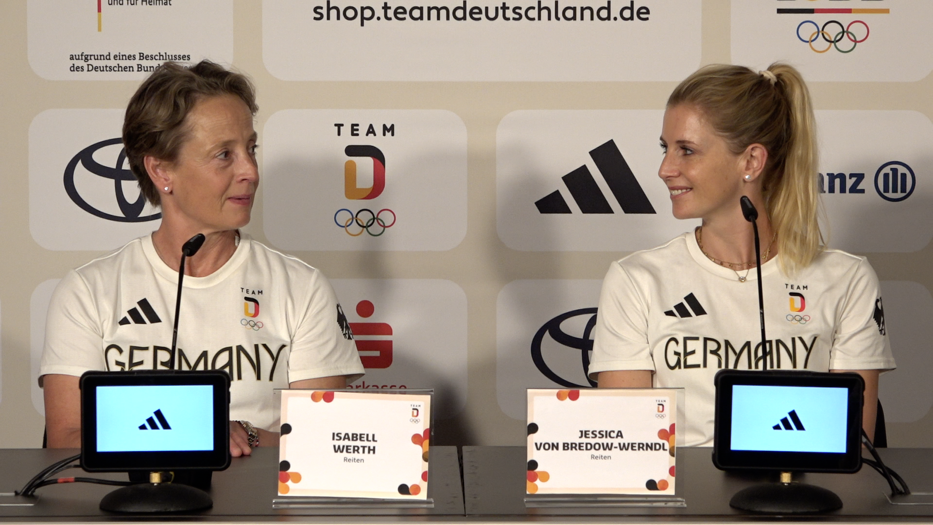 Zwei Pressekonferenzen mit olympischen Medaillengewinnern haben heute im Deutschen Haus Paris stattgefunden: Die Silbermedaillengewinner im Mixed-Bogenschießen Michelle Kroppen und Florian Unruh sprachen im Rahmen der Pressekonferenz u.a. über ihren Wettkampf sowie die Aufmerksamkeit, die ihrem Sport durch die Olympischen Spiele gewidmet wird. Im Anschluss blickten die Goldmedaillengewinnerinnen des Dressur-Teams Isabell Werth und Jessica von Bredow-Werndl auf ihren Wettkampf zurück und sprachen dabei u.a. über das knappe Ergebnis ihres Wettkampfes und die Besonderheit des Venue in Versailles.