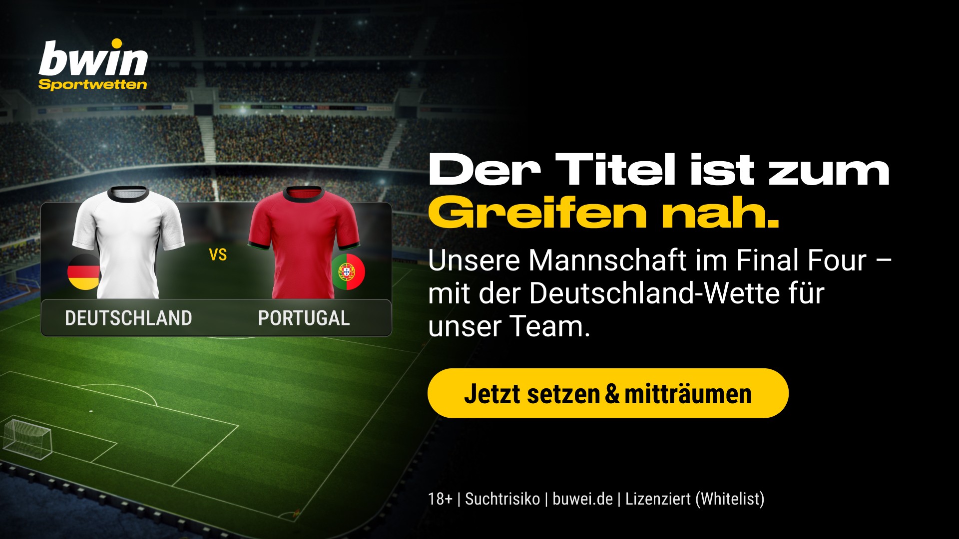 Im zweiten Halbfinale trifft Europameister Spanien am Donnerstag (21.00 Uhr / ARD) mit leichten Vorteilen und Sieg-Quote 2,37 in Stuttgart auf Frankreich (Quote 2,90). Das Finale findet ebenso wie das Spiel um Platz 3 am Sonntag (15.00 Uhr / 21.00 Uhr) statt.