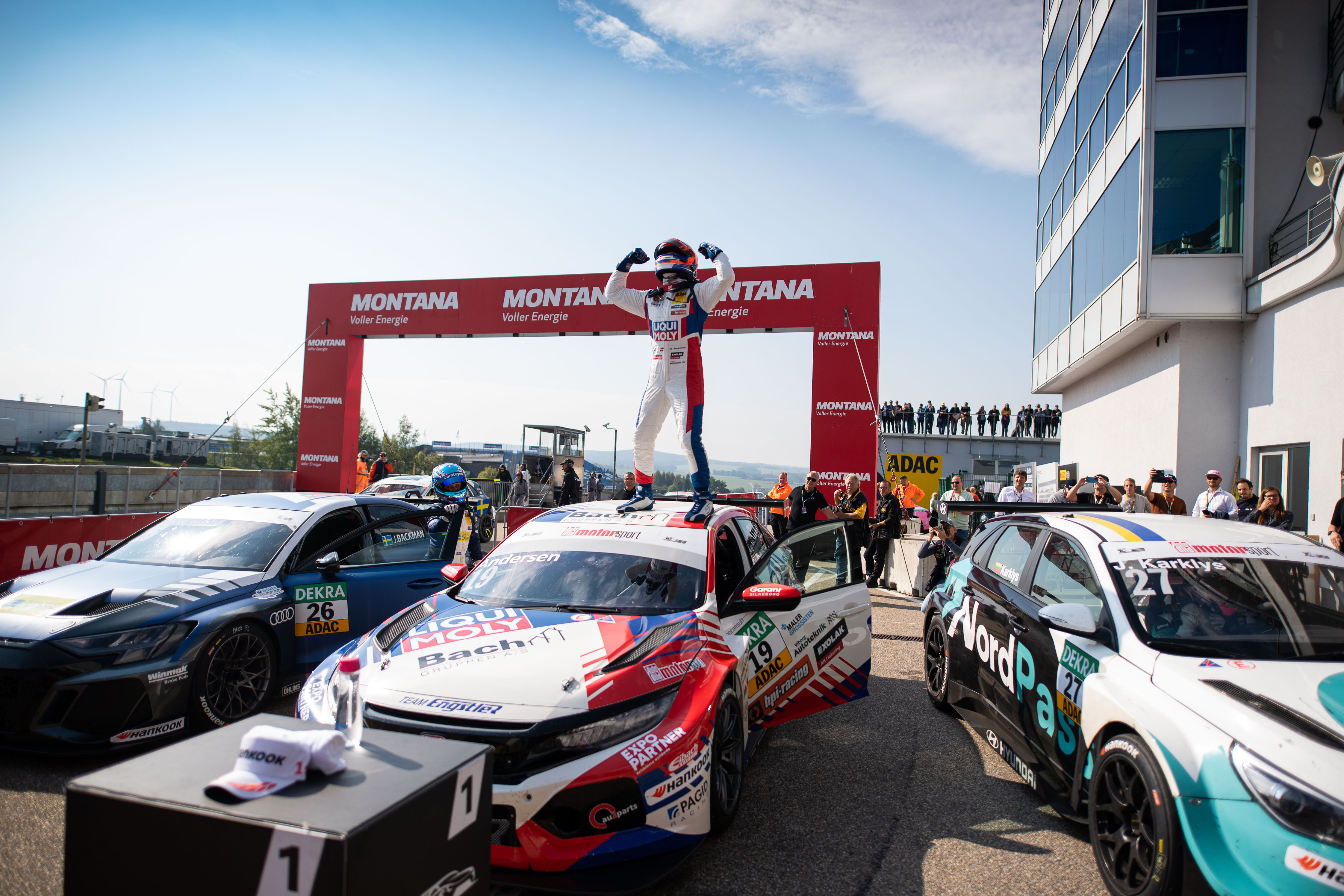 Vom Start weg machte Andersen seine Ambitionen deutlich, den Titel gewinnen zu wollen. Dennoch blieb es innerhalb der ersten fünf Piloten und Pilotinnen über die gesamte Renndistanz sehr eng. Kurz vor Rennende musste Karklys noch einmal gegen Langeveld verteidigen, aber der Litauer gewann das Duell und sicherte seinen Podestplatz. Hinter den beiden folgten drei Junioren. René Kircher (22, Hünfeld, ROJA Motorsport by ASL Lichtblau) verpatzte den Start in seinem Hyundai i30 und fiel von P2 auf den fünften Rang zurück. Auf diesem sollte der ROJA-Fahrer das Rennen auch beenden. Sein ärgster Konkurrent in der Junior-Wertung, Szymon Ladniak (19, Polen, Liqui Moly Team Engstler) im Honda Civic, beendet das Rennen auf dem siebten Platz. In der Junior-Wertung hat Ladniak dadurch 18 Punkte Vorsprung auf Kircher. Eine Entscheidung wird es auf dem Hockenheimring geben. Zwischen Kircher und Ladniak kam Max Gruhn (22, Dannenberg, Gruhn Stahlbau Racing) im Audi RS3 als sechster und zweitbester Junior ins Ziel.