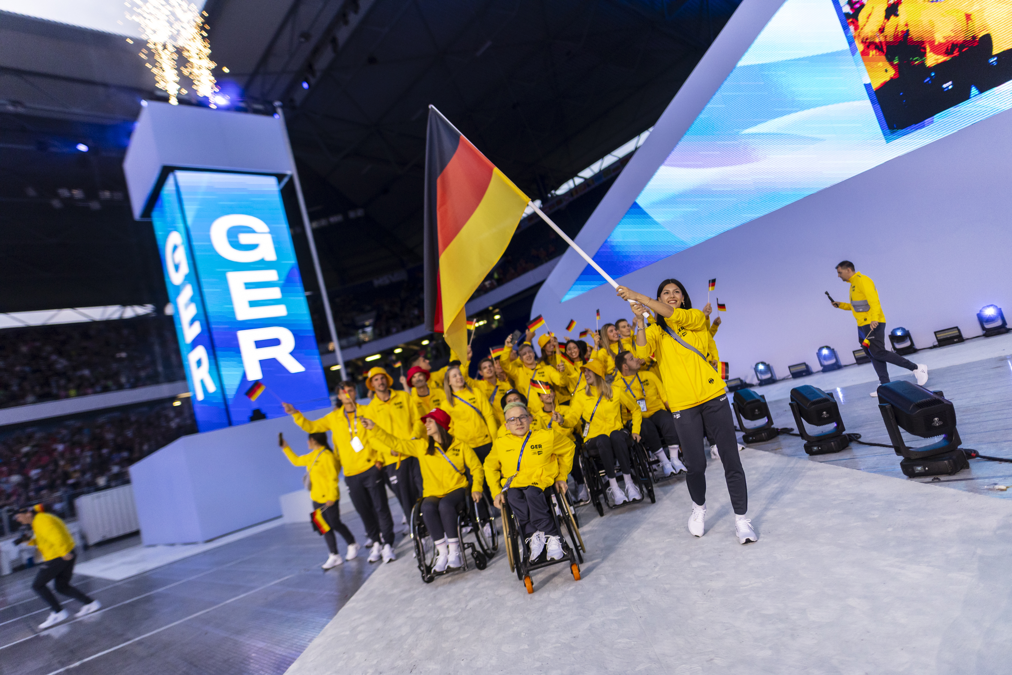 Flaggen aus aller Welt füllten beim Einzug der Nationen die Arena. Die deutschen Flaggenträger zeigten sich überwältigt. „Es war ein wahnsinnig aufregendes Gefühl, mit der Flagge in das volle Stadion einzulaufen“, sagte Any Kisskalt, die zum zweiten Mal an den FISU Games teilnimmt, nach dem Einmarsch der deutschen Mannschaft. Sören Seebold ergänzte: „Wir wurden im vollen Stadion mit tosendem Applaus begrüßt. Das war ein echter Gänsehautmoment. Wir freuen uns alle riesig auf die kommenden Wettkämpfe und die gemeinsame Zeit mit den Sportlerinnen und Sportlern aus aller Welt hier bei uns in Deutschland.“