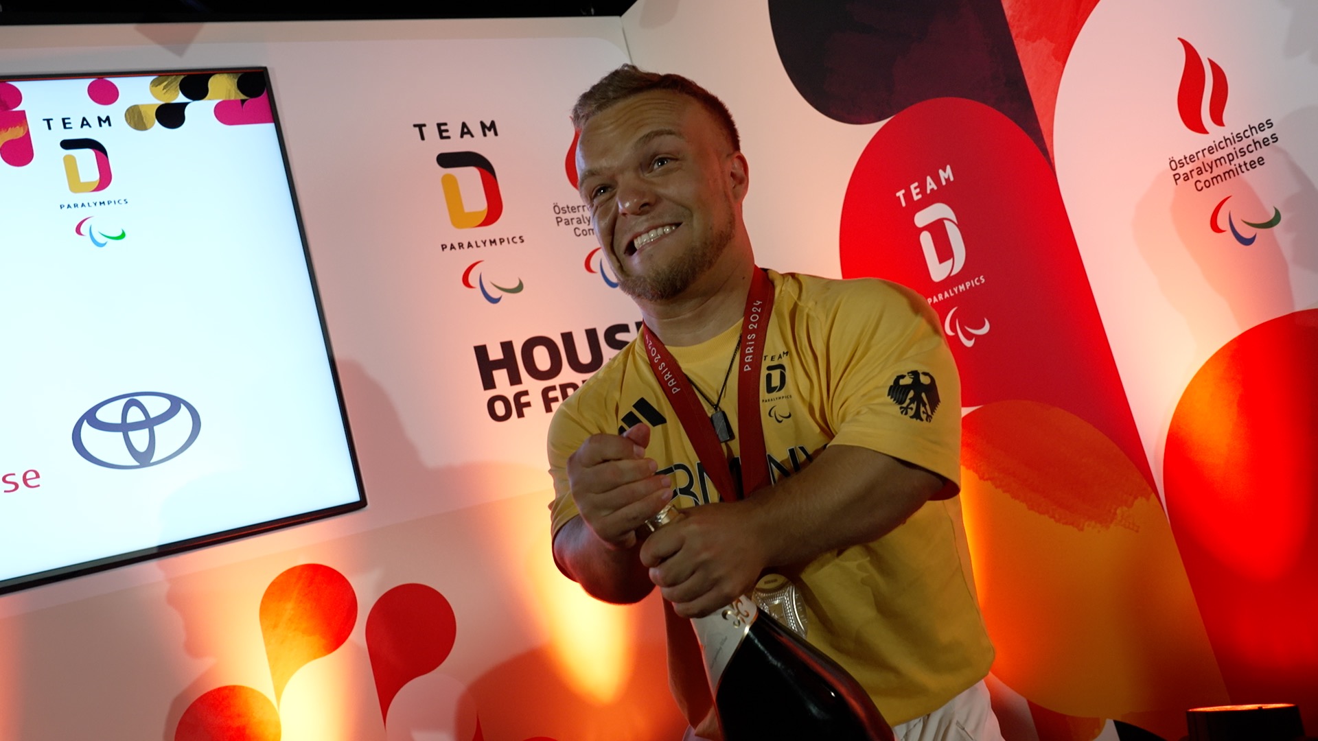 Im Deutschen Haus Paralympics gibt es erneut jede Menge Grund zur Freude: Das erfolgreiche Triathlontrio Schulz, Gelhaar und Renner/Paulig, Kugelstoßer Niko Kappel, Badmintonspieler Thomas Wandschneider und die bereits am Vortag erfolgreichen Schwimmer Scholz und Topf haben sich zum sogenannten Medal Moment angekündigt.