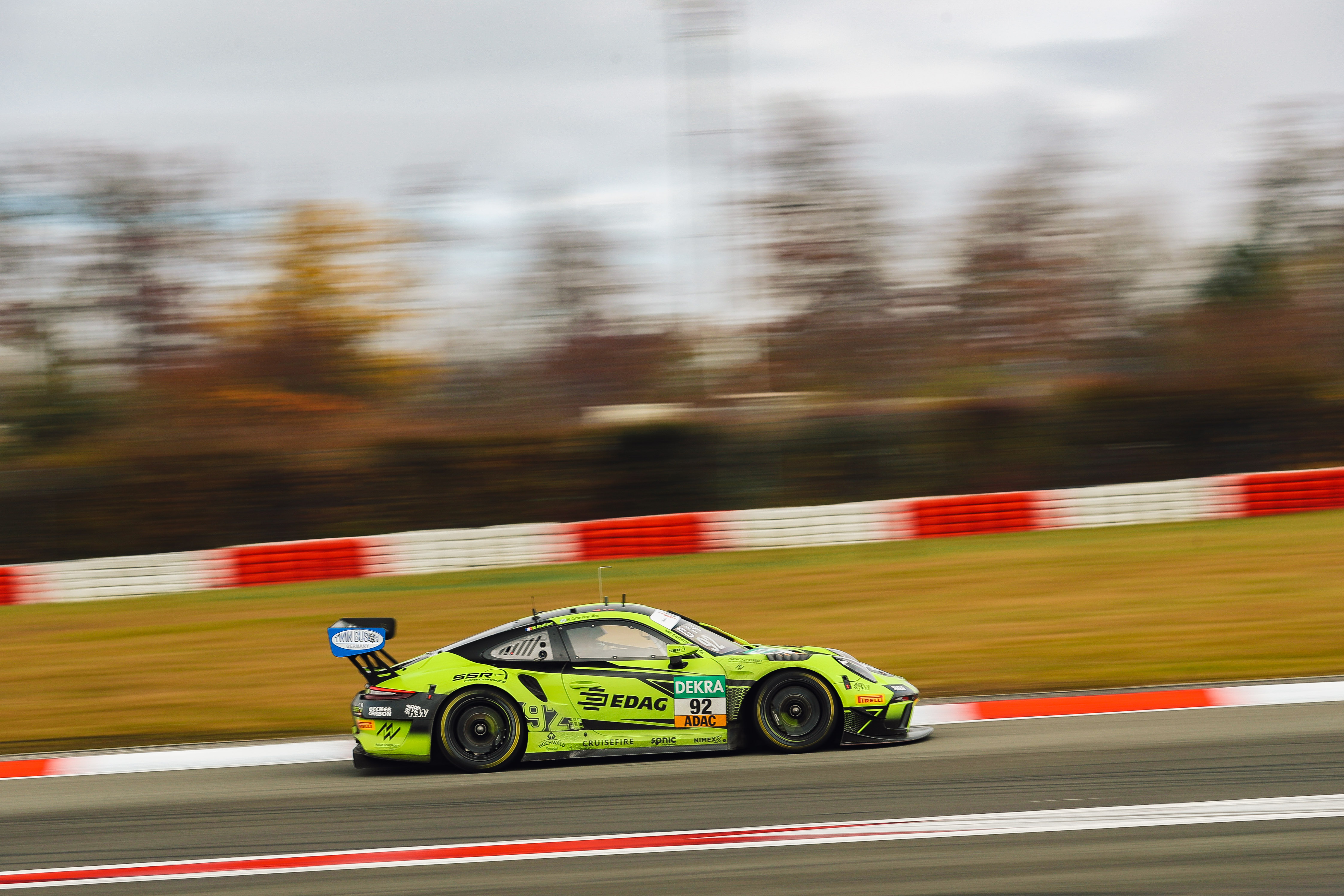 Jaminet, ADAC GT Masters-Champion von 2018, setzte seine Bestzeit bereits knapp vor der Halbzeit der 45-minütigen Sitzung. „Wir waren anfangs nicht sicher, wie die Streckenbedingungen sind“, so Jaminet. „Vor allem am Anfang war es noch nass, vor allem im ersten Sektor. Wir sind etwas überrascht, dass es niemandem am Ende noch gelungen ist, die Rundenzeit zu schlagen. Wir haben seit dem Test gestern das Auto noch einmal ziemlich umgebaut und es sieht so aus, als hätte sich dies bezahlt gemacht. Es ist immer noch Raum für Verbesserungen, aber das war schon mal ein guter Beginn. Mal sehen, wo wir heute Nachmittag stehen, wenn die Strecke komplett trocken ist.“ Die beiden Fahrer von SSR Performance liegen in der Tabelle 17 Punkte zurück, Ammermüller hat die Chance, als erster Fahrer in der Geschichte des ADAC GT Masters den Titel erfolgreich zu verteidigen.