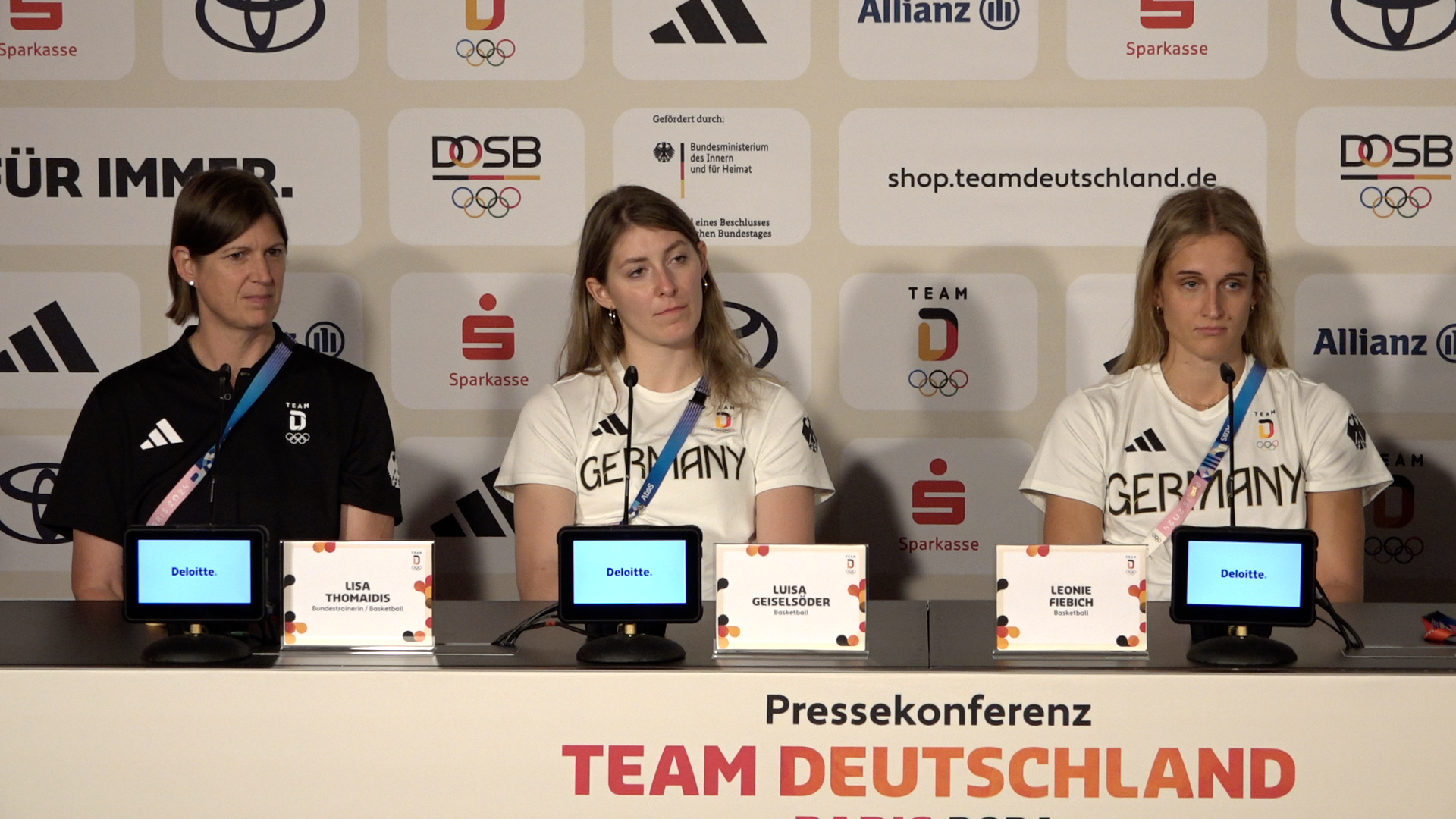 Im Rahmen der täglichen Pressekonferenz war die Basketball-Nationalmannschaft der Damen um Leonie Fiebich, Luisa Geiselsöder und Bundestrainerin Lisa Thomaidis zu Gast. Nachdem die Basketballerinnen gegen Gastgeber Frankreich aus dem olympischen Turnier ausgeschieden sind, beantworteten sie im Deutschen Haus die Fragen der Presse und sprachen u.a. darüber, wie sie und ihr Team die Niederlage verkraftet haben und über die Unterschiede zwischen dem amerikanischen und europäischen Basketball.
