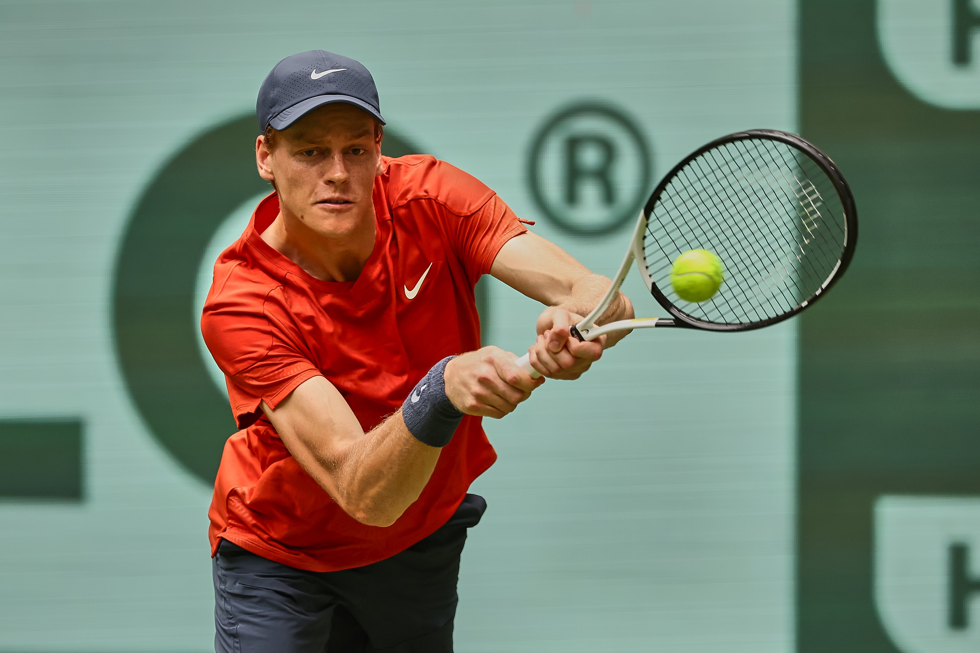 Bildzeile (Sinner, Jannik): Jannik Sinner kämpft sich in die zweite Runde der TERRA WORTMANN OPEN und liefert nebenbei den Schlag des Turniers. © TERRA WORTMANN OPEN/Mathias Schulz (honorarfrei)