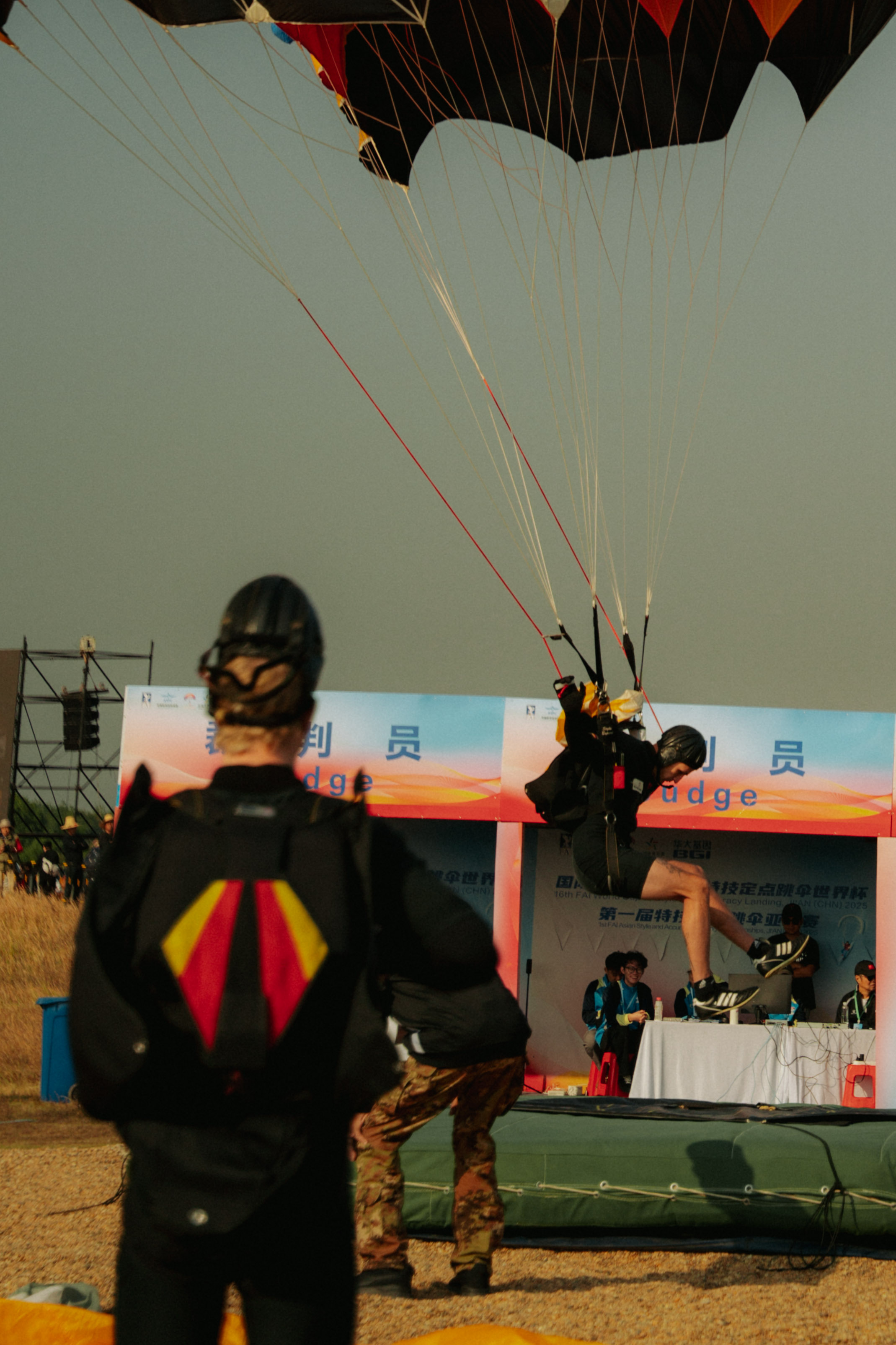 Bei anspruchsvollen Wetterbedingen erfolgte der Start in den Wettkampf mit „kleinen Hindernissen“ für das deutsche Team. Nachdem das Sprunggepäck von Elischa Weber und Samuel Wallrath in Peking hängen geblieben war, musste Weber die erste Runde Zielspringen mit einem geborgten Schirm und Turnschuhen absolvieren.