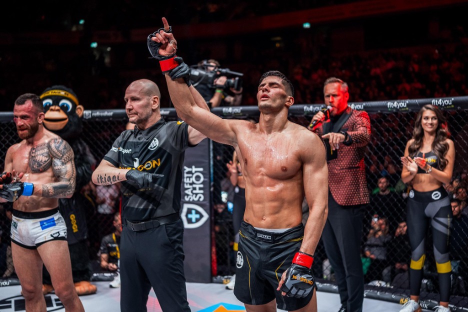 Endlich fand das statt, worauf viele MMA-Fans gewartet haben: Das OKTAGON-Debüt des Düsseldorfer Models & Social Media Stars Islam “The Ripper” Dulatov gegen Ioannis Palaiologos, der im vergangenen Jahr Christian Jungwirth in Frankfurt bezwungen hat. Von “Islam, Islam”-Sprechchören der fast 10.000 Fans in der Oberhausener Rudolf Weber-ARENA angefeuert, legte Dulatov eine absolut beeindruckende erste Runde hin und war dem Griechen, in allen Belangen überlegen. Mehrfach zu Boden gegangen, konnte Palaiologos trotzdem fast die zweite Runde erreichen und einmal mehr zeigen, wie zäh er ist. Das verhinderte Dulatov aber und beendete den Kampf mit 1 Sekunde Restzeit per TKO. Nach dem Kampf sagte Dulatov: “Ich denke, ich habe gezeigt, dass ich mit den Besten der Besten mithalten kann.”. Bei der anschließenden Pressekonferenz hat er uns auch schon seinen nächsten Wunschgegner mitgeteilt: Leandro “Apollo” Silva, der zuletzt Siege gegen die Deutschen Christian Eckerlin und Mo Grabinski einfahren konnte und im Weltergewichts-Ranking auf Platz 6 steht. Dulatov sprach davon, dass er “Rache für seine Freunde nehmen” wolle.
