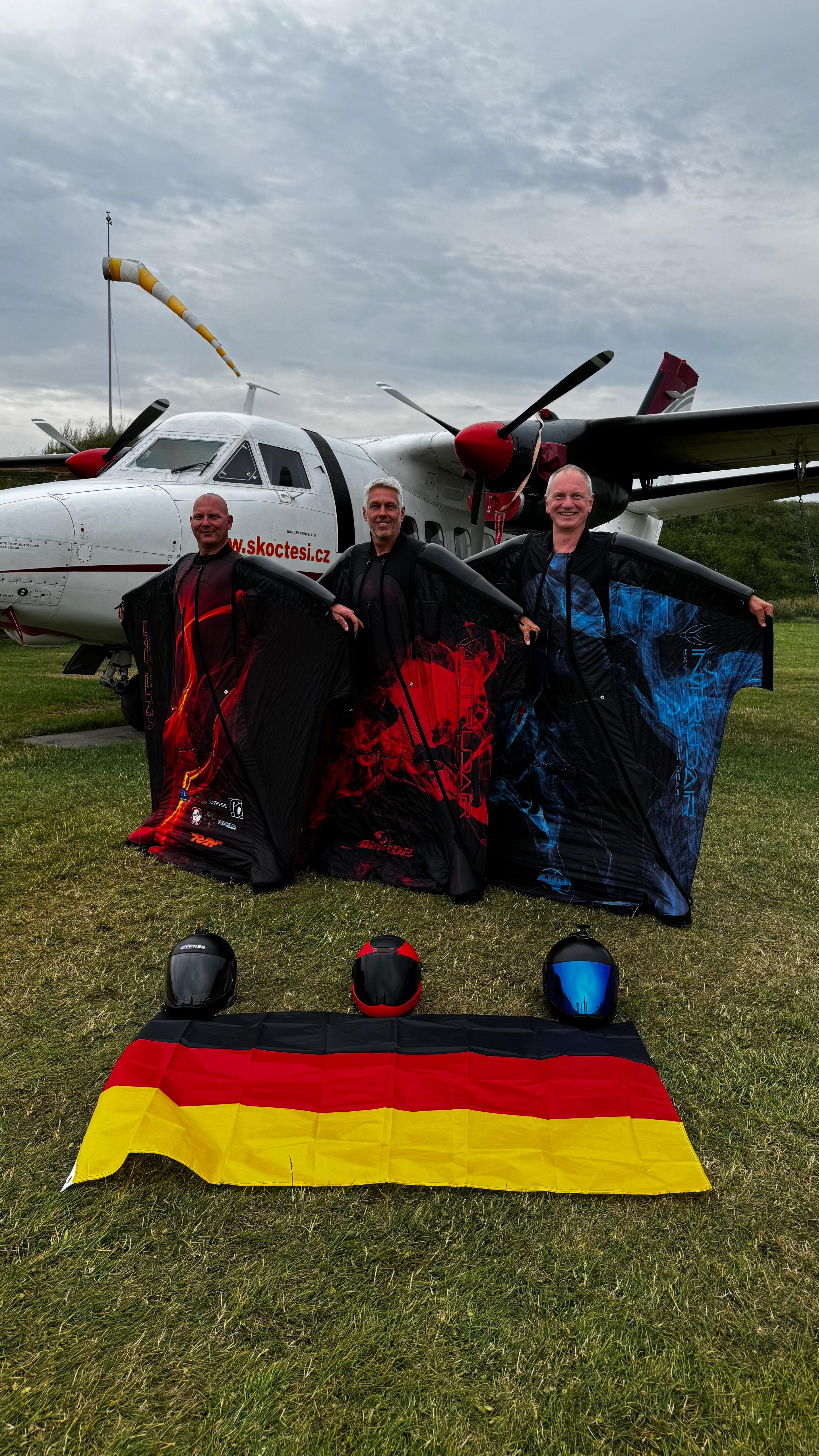 Prostejov/Überherrn, 21. August 2025 (DFV) – Mit drei Medaillen und einem neuen deutschen Rekord gingen am Donnerstag im tschechischen Prostejov die dritten FAI European Wingsuit Flying Championships und der fünfte FAI World Cup of Wingsuit Flying für den Deutschen Fallschirmsport-Verband (DFV) äußerst erfolgreich zu Ende.
