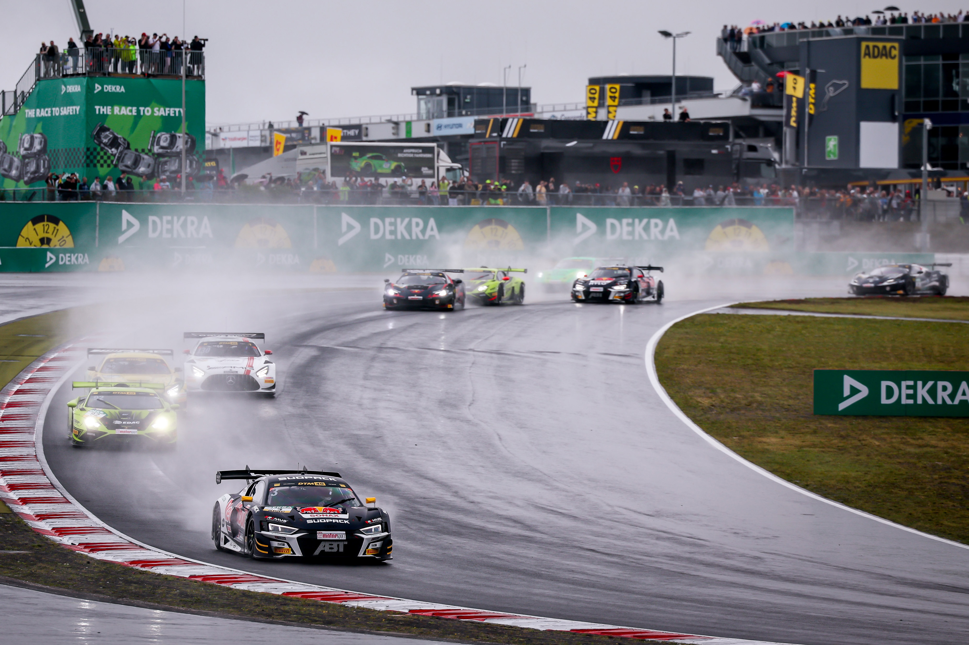 Das war eine Regen-Gala von Kelvin van der Linde (ZA). Der Audi-Pilot von Abt Sportsline fuhr am Samstag auf dem Nürburgring beim neunten DTM-Saisonlauf in einer anderen Liga als der Rest des Feldes. Mit einem Vorsprung von über 15 Sekunden überquerte der Südafrikaner als Erster die Ziellinie und eroberte mit seinem zweiten Saisonsieg wieder die Tabellenspitze. „Den Rennsieg zu holen und damit die Gesamtführung zu übernehmen, ist einfach großartig. Mal hat es mehr geregnet, mal weniger. Bei diesen wechselnden Bedingungen immer die richtigen Bremspunkte zu treffen, war eine große Herausforderung. Ich habe mich im Auto aber trotz des Regens von der ersten Runde an super wohl gefühlt“, sagte der 28-jährige van der Linde. Rang zwei belegte der bis dahin Gesamtführende Mirko Bortolotti (I) im Lamborghini von SSR Performance, der in der Meisterschaft mit nur einem Punkt Rückstand Zweiter ist. Maro Engel (Monaco) vom Mercedes-AMG Team Winward sicherte sich den dritten Podiumsplatz.