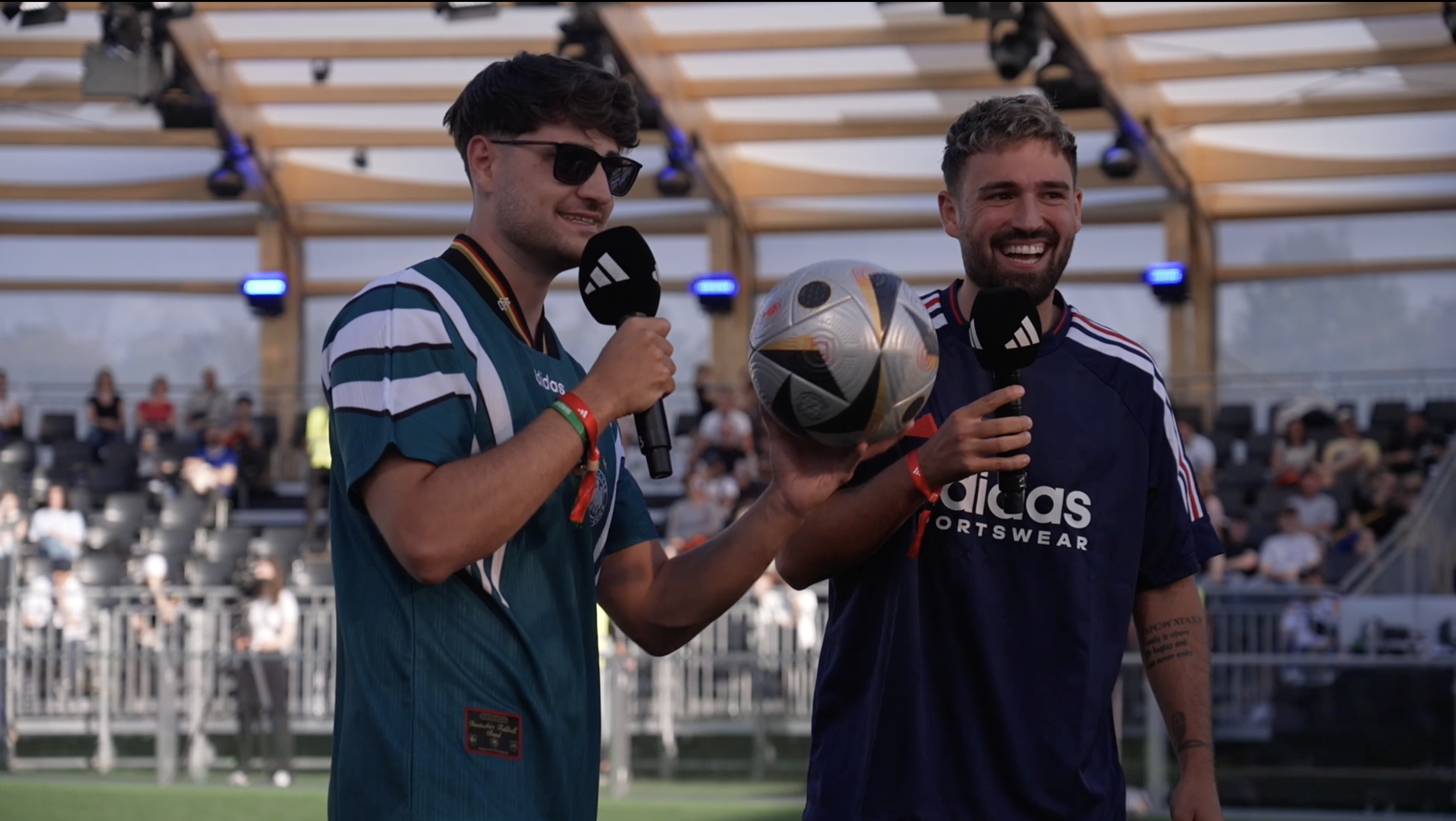 Im Rahmen der Fußball-Eventreihe "Lass Zocken" hat adidas heute den offiziellen Spielball "Fussballliebe Finale" vorgestellt, der im Halbfinale und Finale der UEFA EURO 2024 zum Einsatz kommen wird. Der Ball wurde in Berlin auf der Eventfläche "Home of adidas Football" direkt vor dem Reichstag gezeigt. Im Panel Talk waren u.a. Fußballweltmeister Per Mertesacker und Bixente Lizarazu mit dabei. Aber auch weitere bekannte Gesichter wie Nationalspielerin Jule Brand waren vor Ort.
