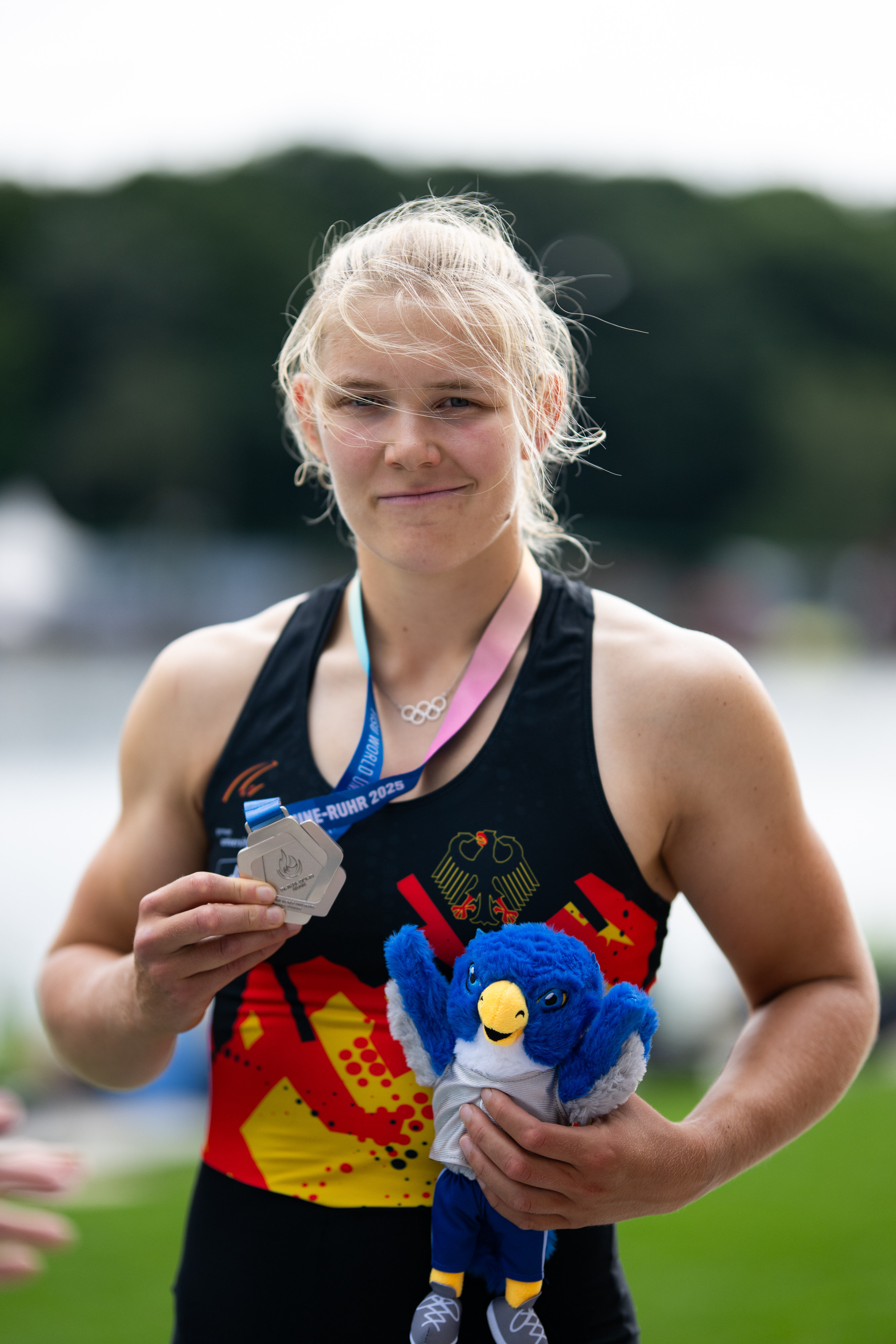 Alle Medaillenentscheidungen im Rudern standen am letzten Wettkampftag der Rhine-Ruhr 2025 FISU World University Games an. Die Ankündigung von adh-Disziplinchef Dr. Sören Dannhauer, an mehreren Siegereherungen teilnehmen zu wollen, erfüllte Team Studi mit dreimal Silber. Olympiateilnehmerin Alexandra Föster (FernUni Hagen) hätte im Einer gerne um Gold gerudert und lag lange Zeit auf dem zweiten Platz. Zwischenzeitlich konnte sie sich sogar die Führung sichern, am Ende machte Anna Santruckova aus Tschechien aber nochmal Tempo und holte damit den Sieg. Föster lag weniger als eine Sekunde dahinter und belohnte sich für ein starkes Rennen mit der Silbermedaille. „Mein Ziel war es, Gold bei den FISU Games zu gewinnen. Respekt an Anna, dass sie so ein starkes Rennen gefahren ist. Bei mir ist leider nicht mehr drin gewesen, das muss ich jetzt akzeptieren“, zeigte sich Föster enttäuscht vom zweiten Platz. Teamkollege Jonas Gelsen (TU Darmstadt) musste im Einer-Finale in der Mitte des Rennens abreißen lassen und kam auf Rang fünf ins Ziel.