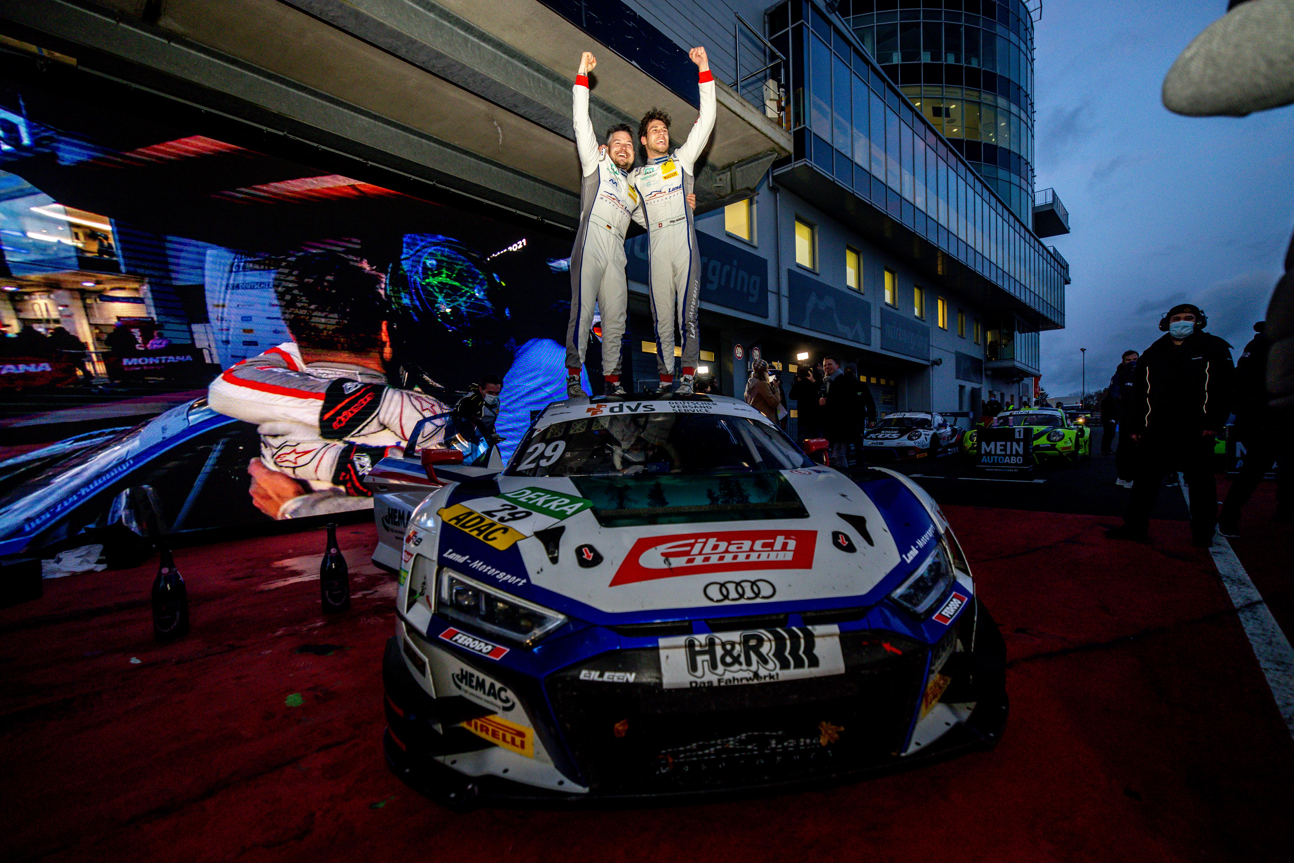 Großes Finale, viel Drama und eine Zitterpartie zum Titel, doch am Ende hat es gereicht: Ricardo Feller (21/CH) und Christopher Mies (32/Düsseldorf, beide Montaplast by Land-Motorsport) sicherten sich im Finalrennen auf dem Nürburgring die Deutsche GT-Meisterschaft. Titelverteidiger Michael Ammermüller (35/Rotthalmünster) und Porsche-Werkspilot Mathieu Jaminet (27/F, beide SSR Performance) holten im letzten Rennen das Maximum heraus und fuhren zum vierten Saisonsieg, doch am Ende reichte Platz zehn für Feller und Mies, um den Titel mit knappen vier Punkten Vorsprung zu gewinnen. Für Mies war es der zweite Meistertitel nach 2016, für Feller der erste überhaupt. Platz zwei ging an Marco Holzer (33/Bobingen) und Joel Eriksson (23/S, beide Küs Team Bernhard) in einem weiteren Porsche 911 GT3 R vor den Lamborghini-Piloten Rolf Ineichen (43/CH) und Franck Perera (37/F, beide GRT Grasser Racing Team). „Es ist ein Megagefühl, dass es geklappt hat“, so der Champion Christopher Mies. „Das Rennen war reiner Nervenkitzel. Es war von Anfang an brutal eng, aber es hat am Ende gereicht. Es war sehr emotional heute.“
