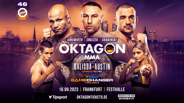 Ob Engizek es schaffen wird, seinen zwölften Sieg in Folge zu holen oder ob Juarez die Sensation gelingt, erfahren die knapp 10.000 Zuschauer bei OKTAGON 46 am 16.09. in der Frankfurter Festhalle. Im Hauptkampf des Abends wird die Frankfurterin Katharina Dalisda als erste Deutsche überhaupt versuchen, den OKTAGON MMA-Titel zu gewinnen. Außerdem geht der “Gamechanger” in die nächste Runde, das höchstdotierte MMA-Turnier Europas (1 Mio. € Preisgeld), wo u.a. Christian “The Kelt” Jungwirth und Marcel “Mo” Grabinski aktiv sein werden.